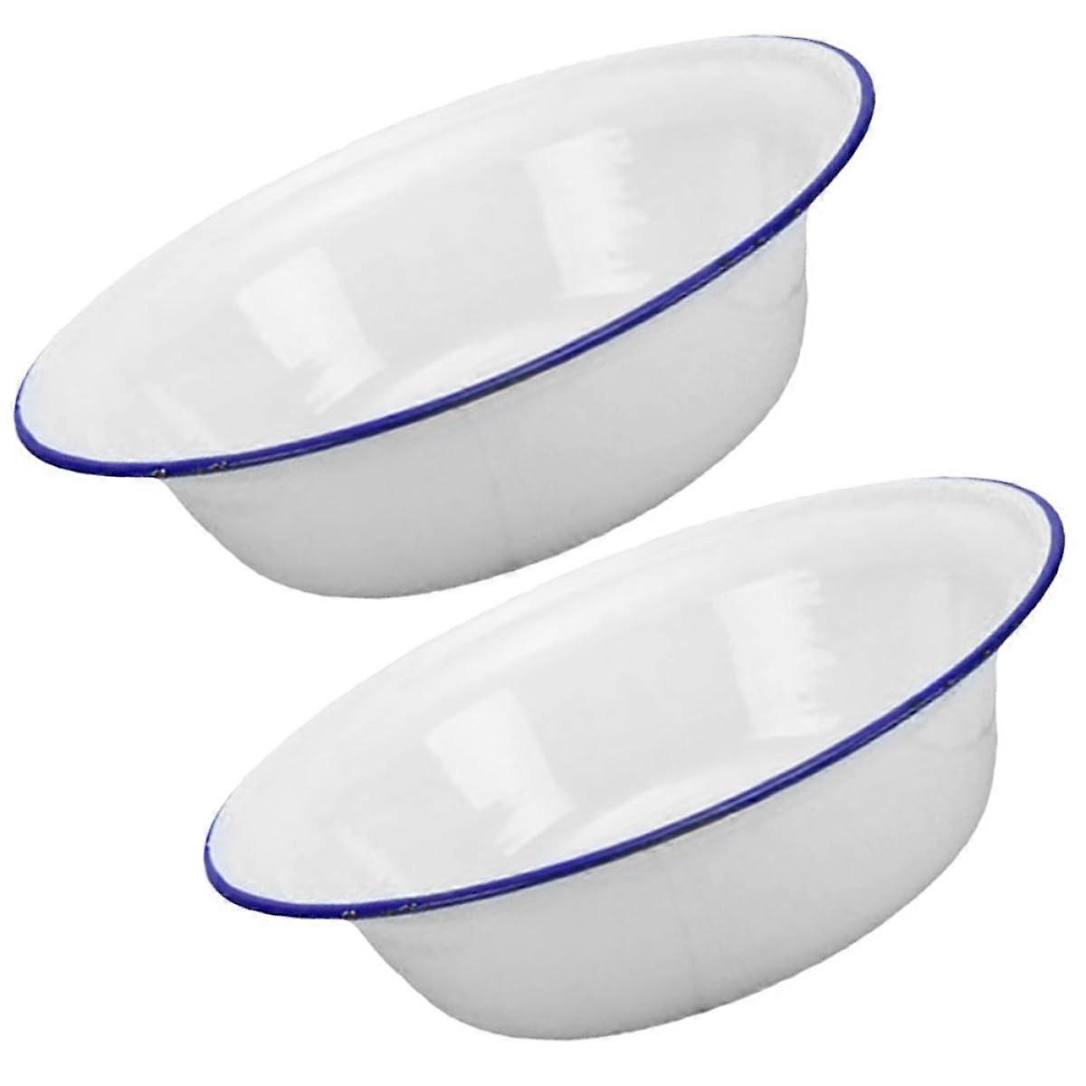 Vintage Enamel Bowl Set 2Pcs 20Cm White Retro Design Durable Enamelware for Serving and Mixing