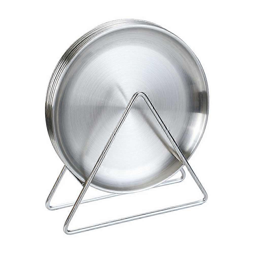 4 Pcs 5.5 Inch Stainless Steel Dinner Plates with Holder, Rust Resistant Metal Serving Plates for Appetizers, Snacks, Desserts