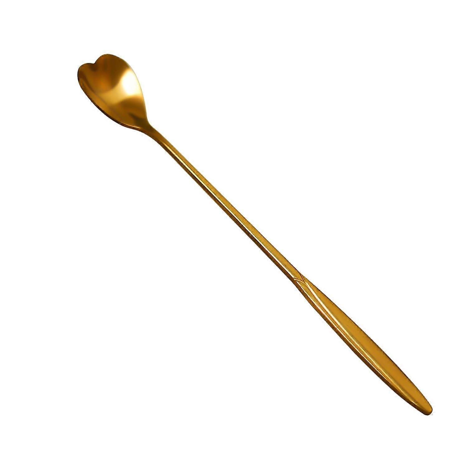 Gold Stainless Steel Heart Shaped Teaspoon, 7 Inch Long Handle, Rust Resistant, Dishwasher Safe