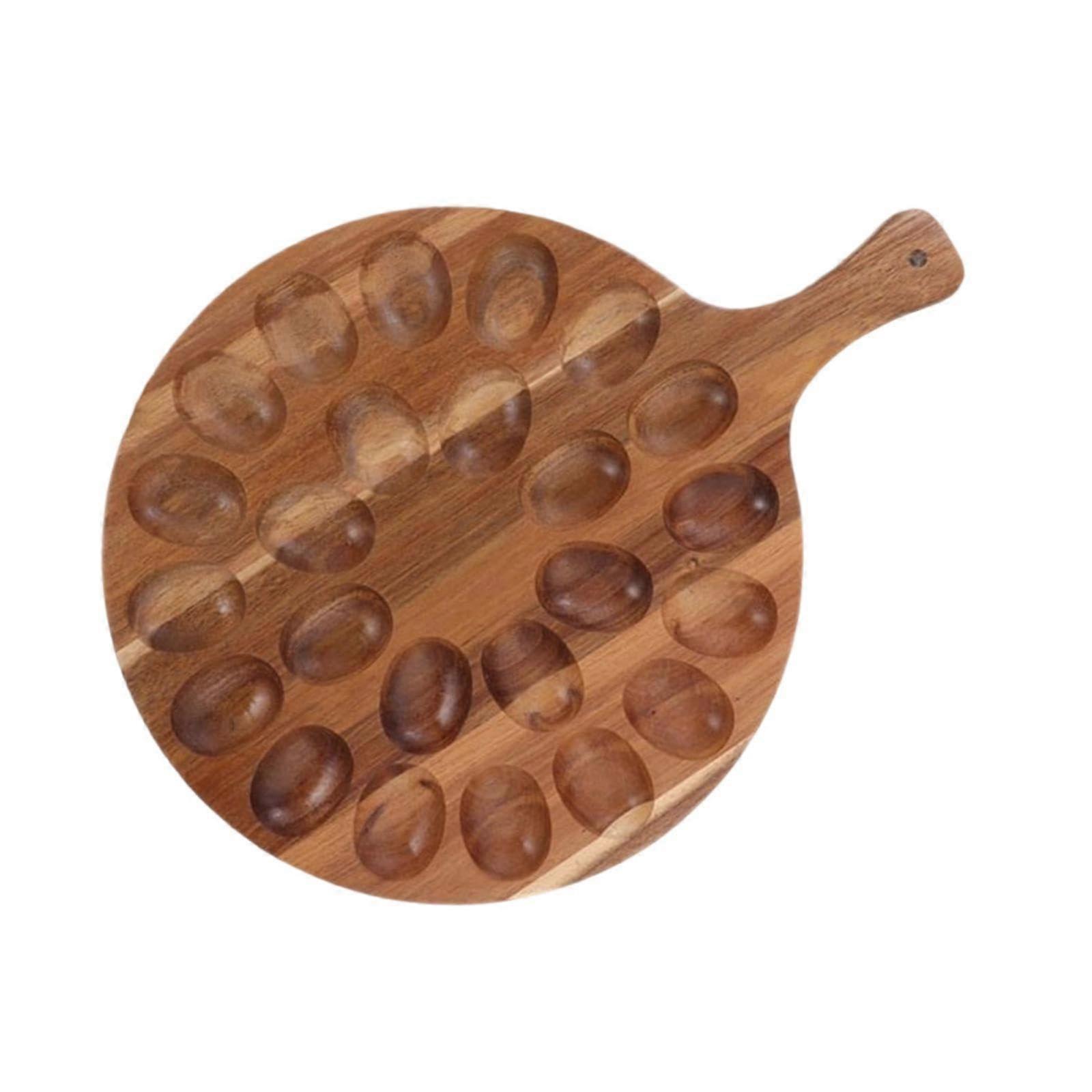 Deviled Egg Platter with 24 Slots and Cutting Board, Acacia Wood Serving Tray with Handle for Parties