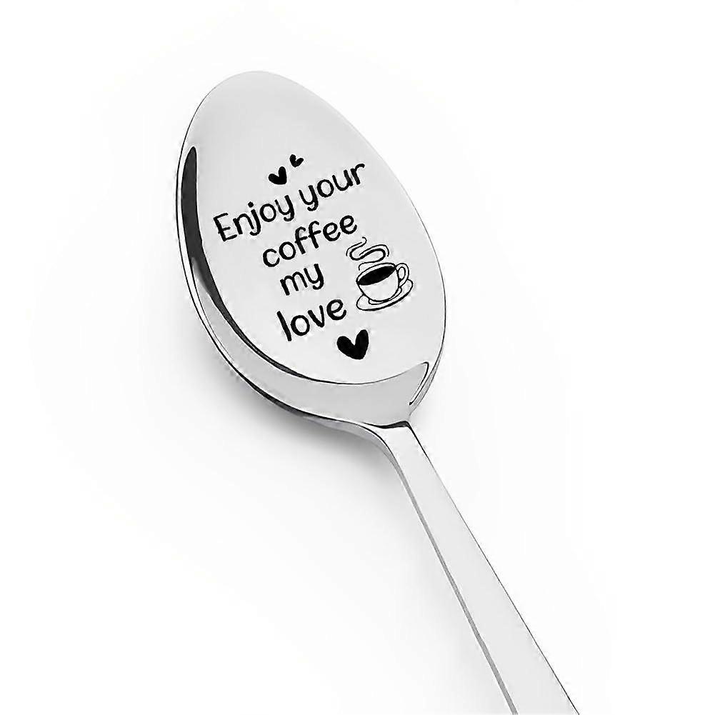 Engraved Coffee Spoon Gift for Coffee Lovers, Rustproof Stainless Steel, Romantic Anniversary Present for Couples