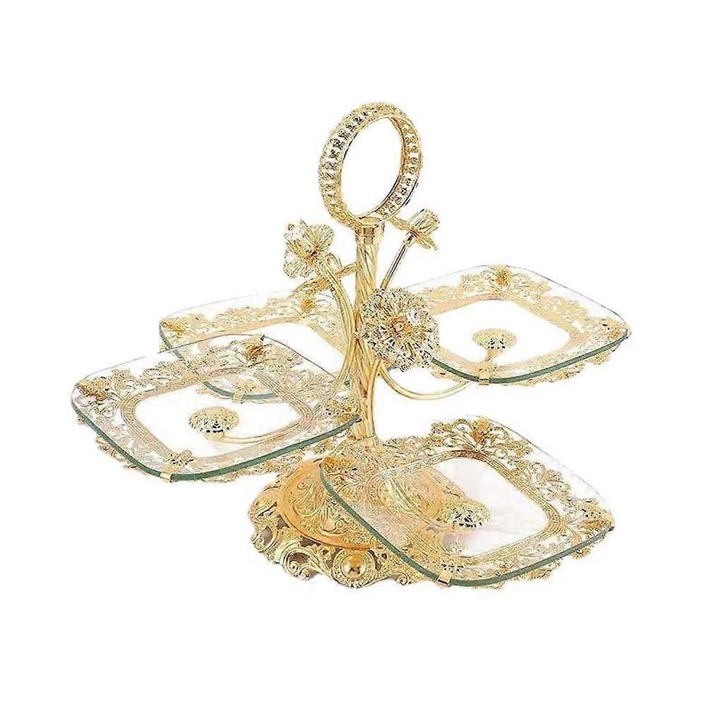 European Style Glass Fruit Serving Platter with Elegant Ring Design and Stable Metal Base