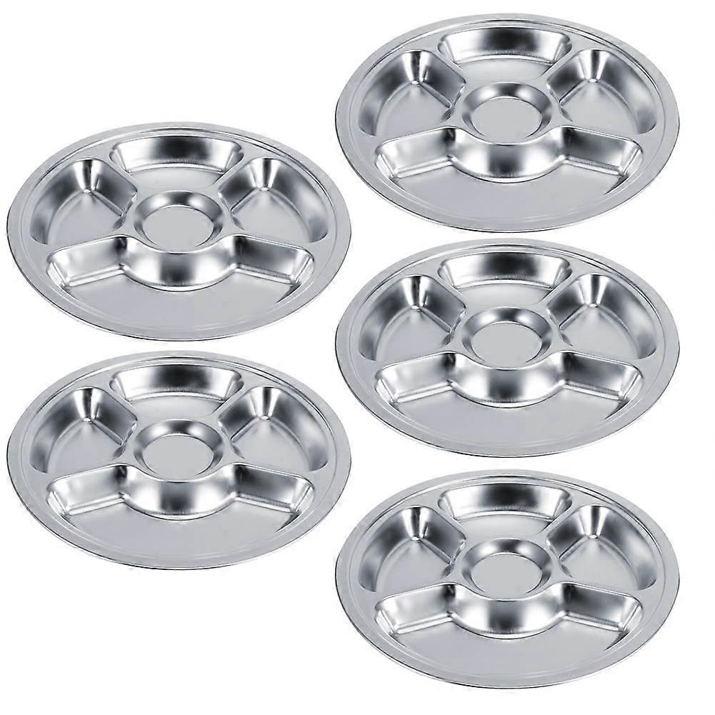 Stainless Steel Divided Dinner Plate Set 5Pcs Rustproof Deep Food Separation for Canteens
