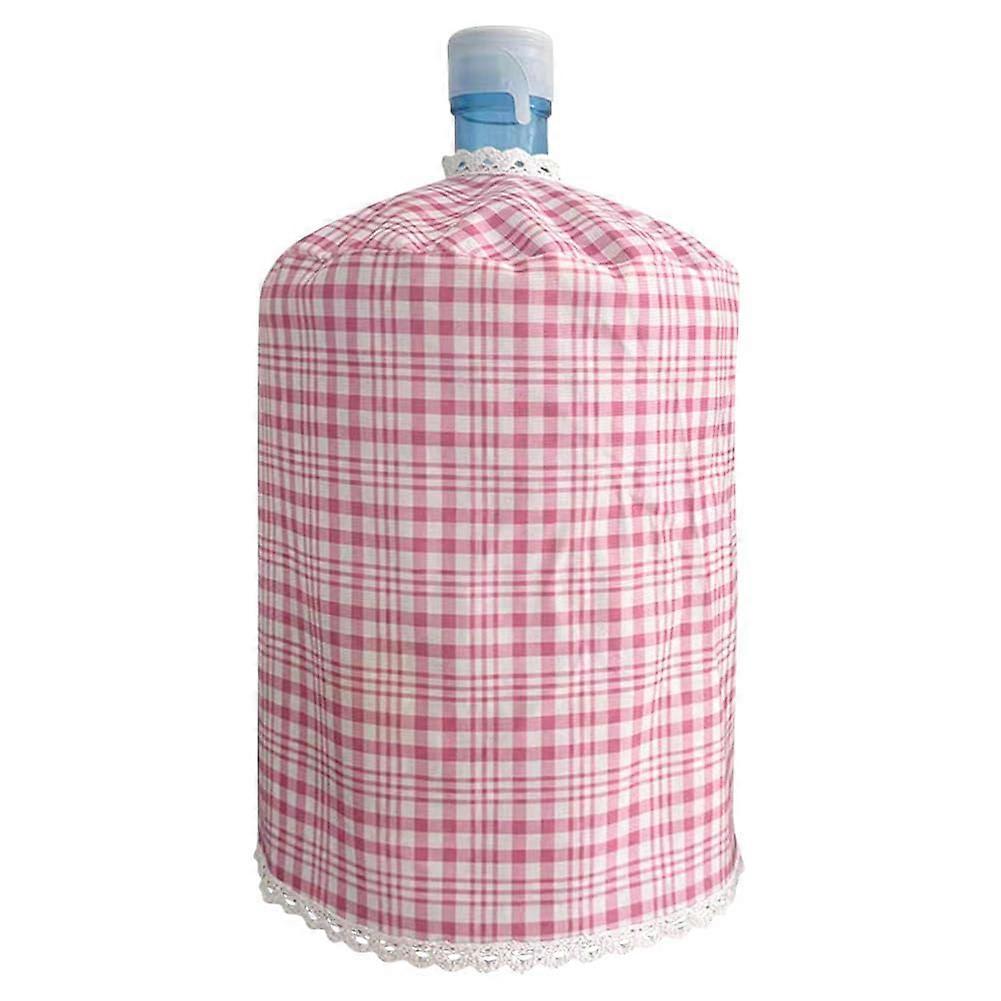 5 Gallon Water Bottle Cover with Dust Protection, Reusable Decorative Dispenser Sleeve for Home Office Pink Grid