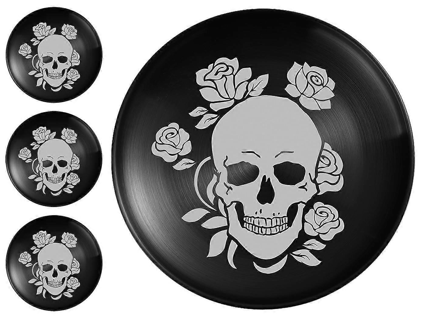 Set of 4 Halloween Skeleton Stainless Steel Dinner Plates, Gothic Skull Design, Dishwasher Safe