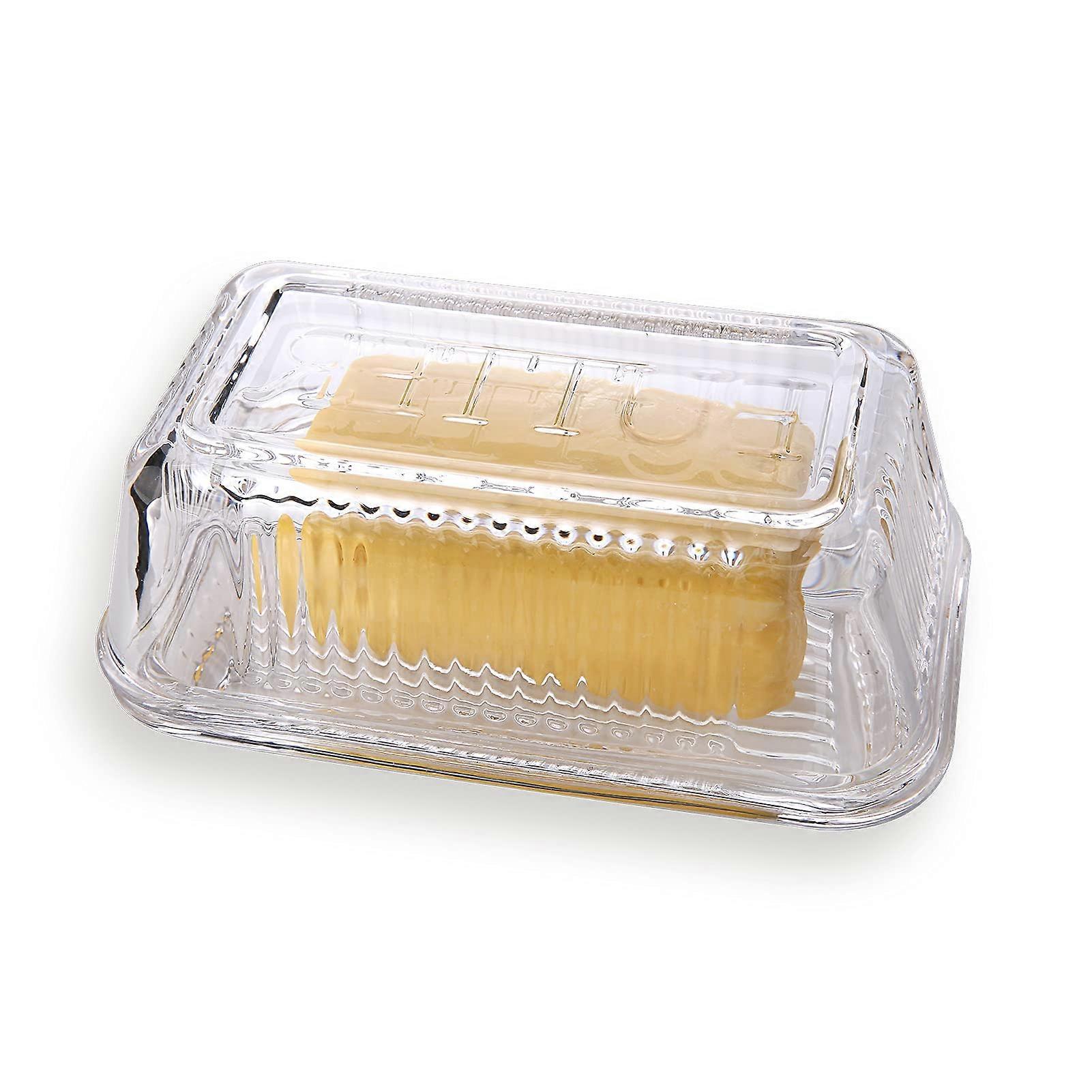 Glass Butter Dish with Lid Fits European Butter Blocks Thick Clear Glass Keeper for Countertop
