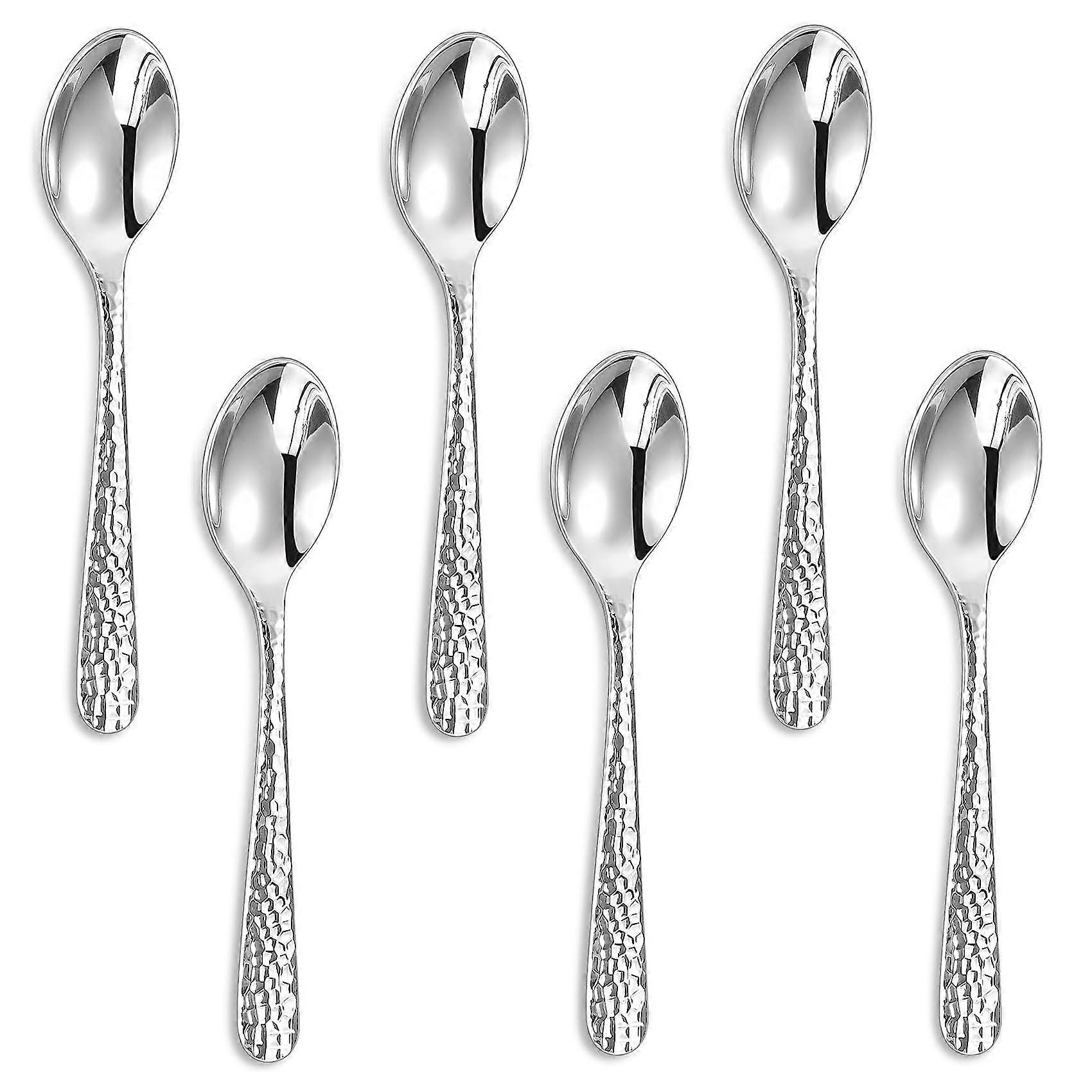 Elegant Hammered Stainless Steel Espresso Spoons Set, 4.4 Inch Demitasse, Dishwasher Safe, 6 Pcs