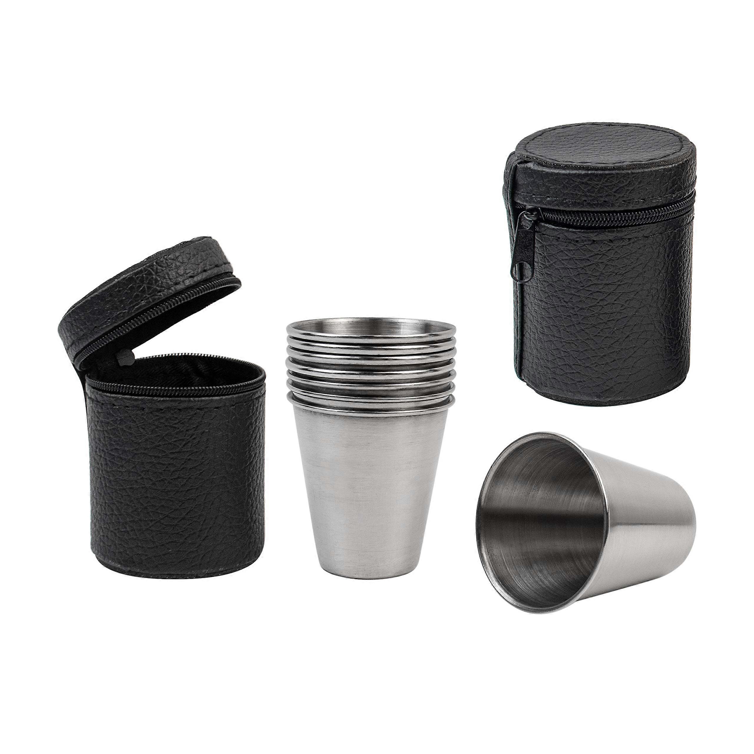 Compact Stainless Steel Travel Shot Glass Set Practical Design: Small, lightweight cups ideal for travel, camping, picnics, or any outdoor activity. for holding drinks, juices, and other beverages while on the go. Convenient Storage: Each set includes 4 shot glasses neatly packed in a durable leather storage case. Keeps cups clean, protected, and easy to carry without risk of loss or damage. Portable Size: Each cup has a 2.3 ounce (70 ml) capacity, designed for easy handling, packing, and storing in bags or backpacks. Durable Material: Made from 201 stainless steel that is corrosionresistant and wearresistant, offering longlasting strength and reliability for repeated use. Use scenarios: 1. Enjoy a quick drink around the campfire while camping. 2. Share beverages during a picnic without worrying about fragile glassware. 3. Keep a set in your car or travel bag for spontaneous outings or road trips. This set combines portability, durability, and convenience, making it easy to enjoy your favorite drinks anywhere.