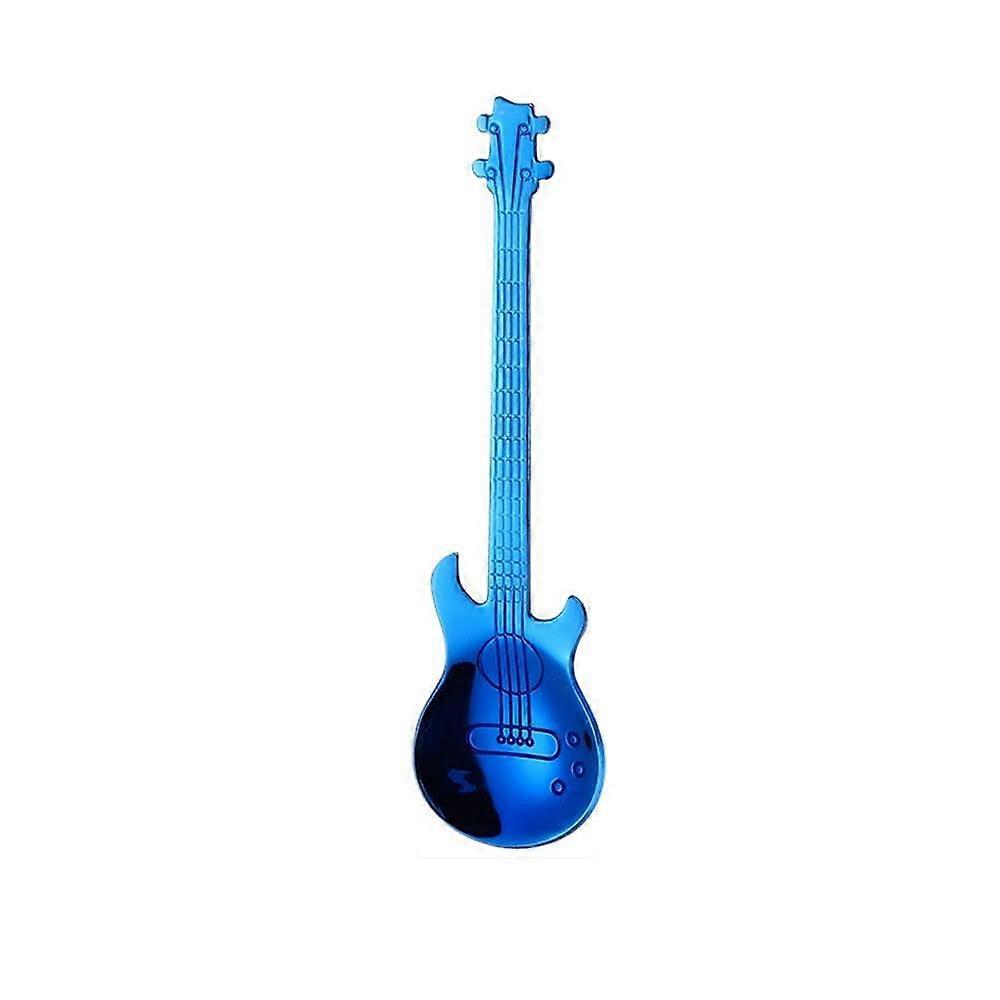 Blue Guitar Shaped Stainless Steel Coffee Spoon for Desserts Ice Cream Rust Resistant