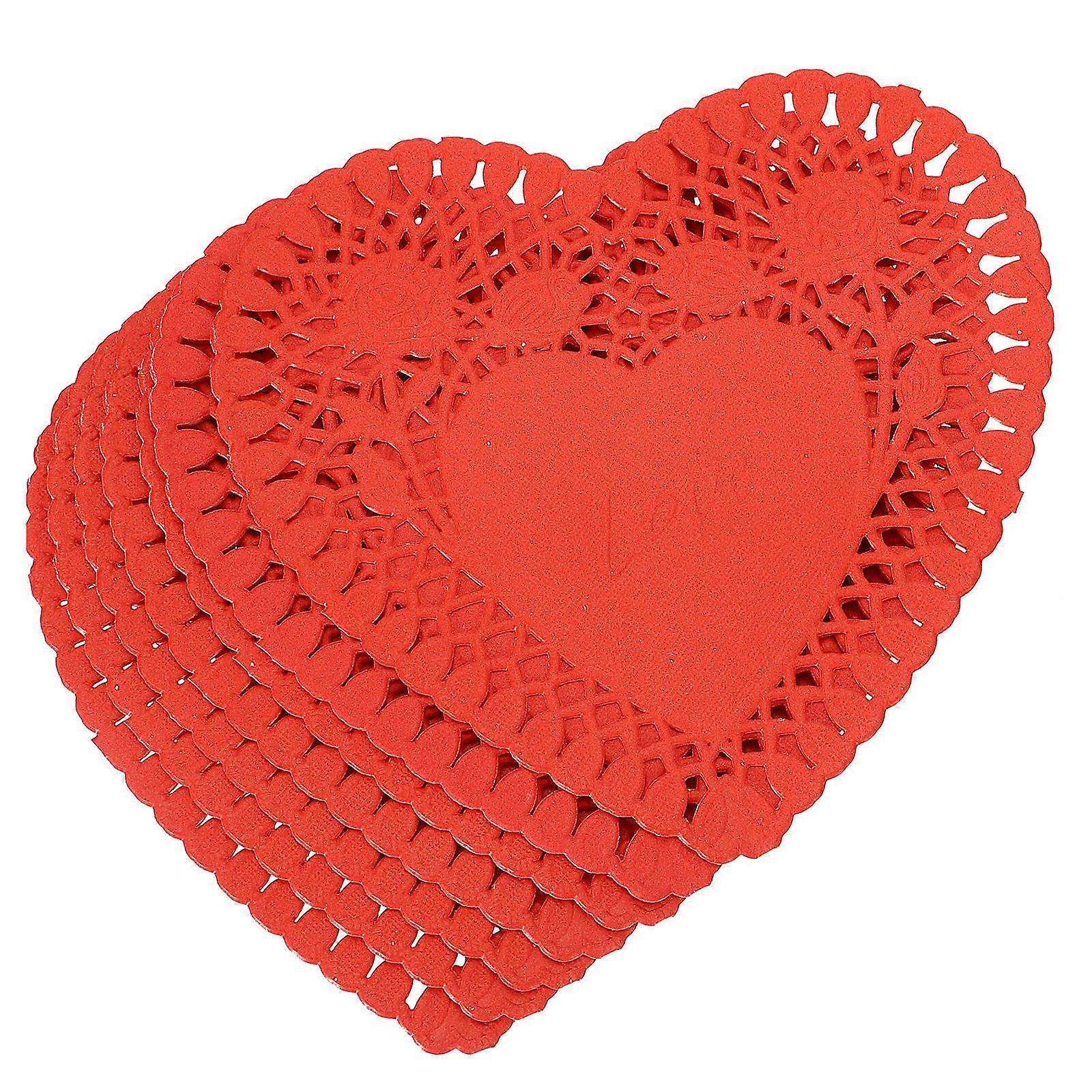 Red Mini Heart Doilies Paper Placemat for Decoration 100 Sheets Paper