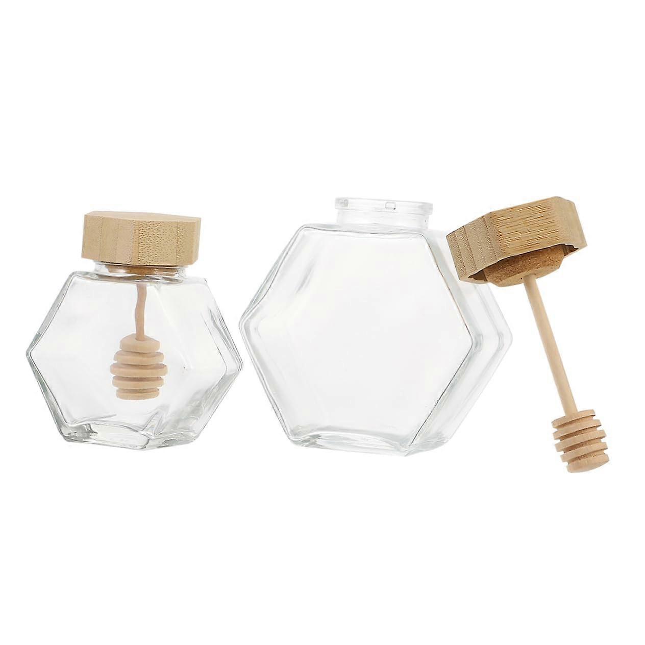 2pcs Glass Honey Storage Jars with Airtight Wooden Lid Clear Durable Containers for Kitchen Use