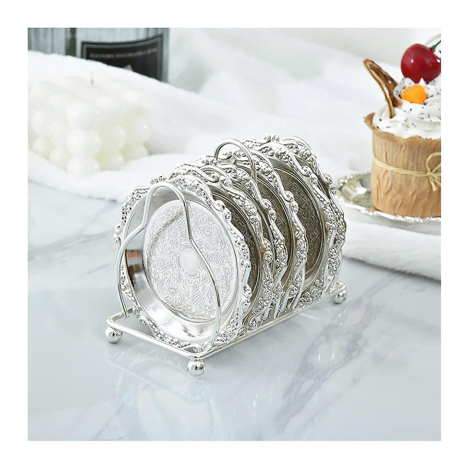 Silver FlowerShaped Metal Serving Platters Set of 6 with Holder for Snacks Candy Kitchen Dining