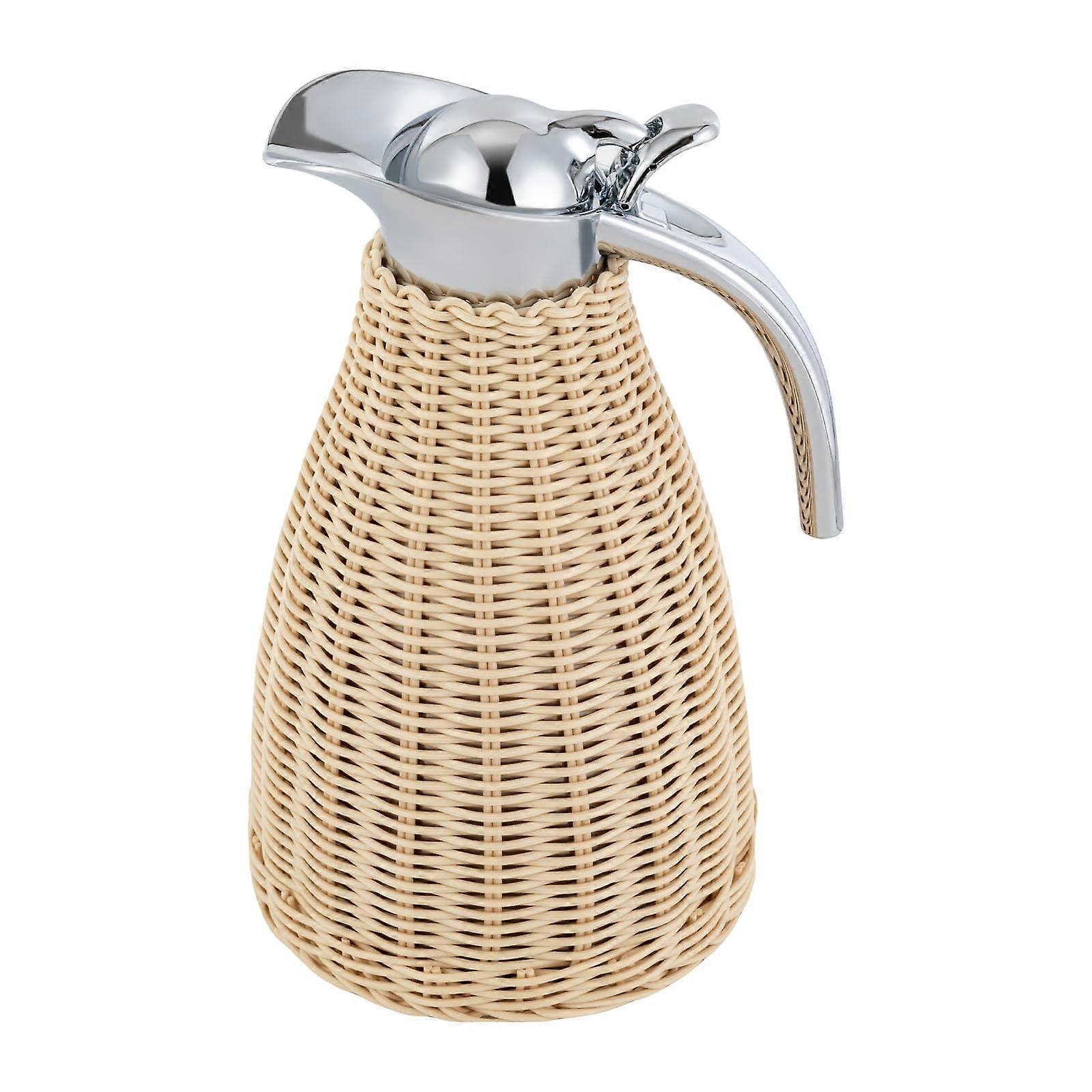 Thermal Coffee Carafe 1.5L Stainless Steel with Double Wall Vacuum Insulation and Rattan Design