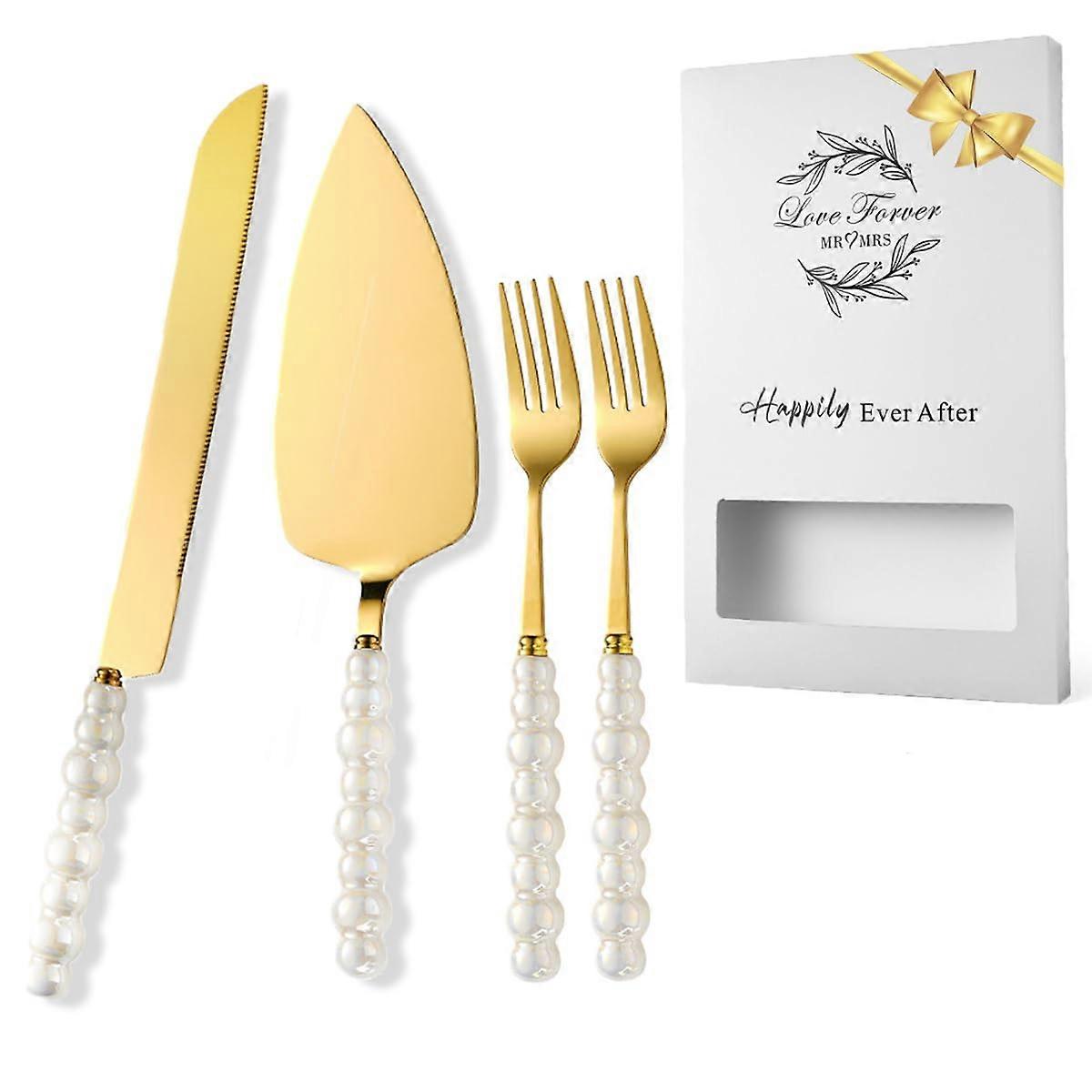 Wedding Cake Knife and Server Set with Elegant Pearl Handle, Gold Stainless Steel, Ideal Wedding Gift