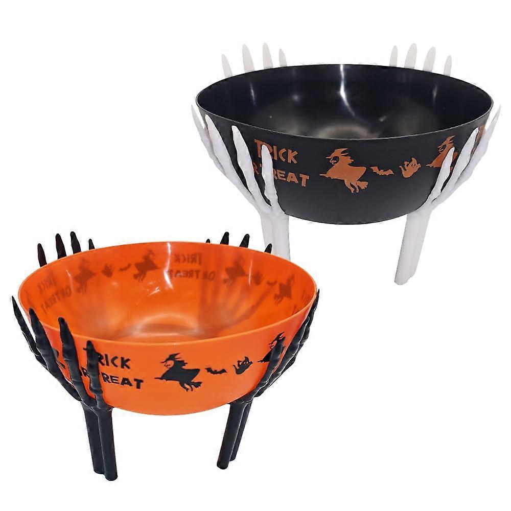 2 Pcs Halloween Candy Bowl with Holder, Large Plastic Snack Serving Bowls for Party, Black Orange