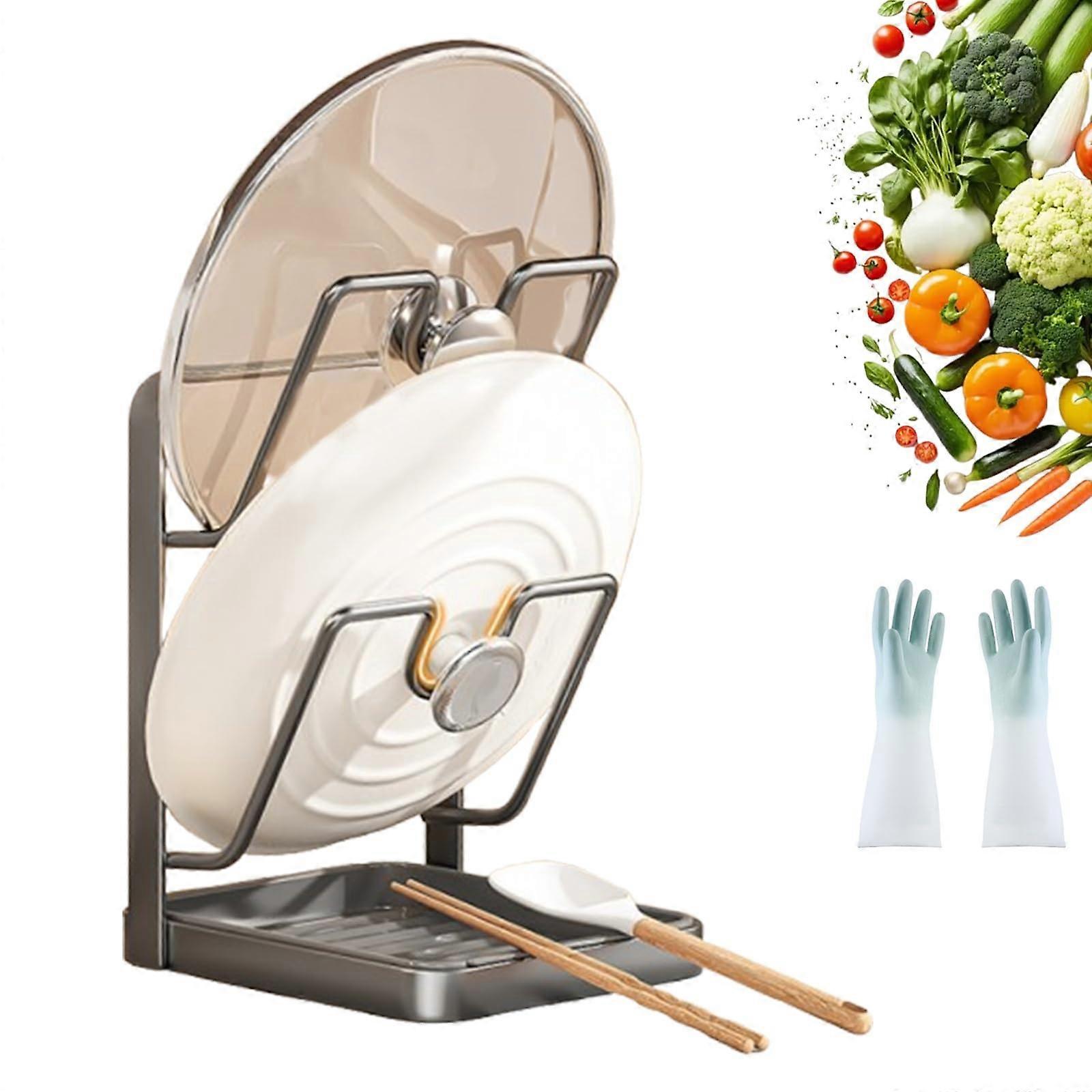 Stainless Steel Pot Lid Organizer with Removable Drip Tray, Double Layer Kitchen Lid Holder Rack