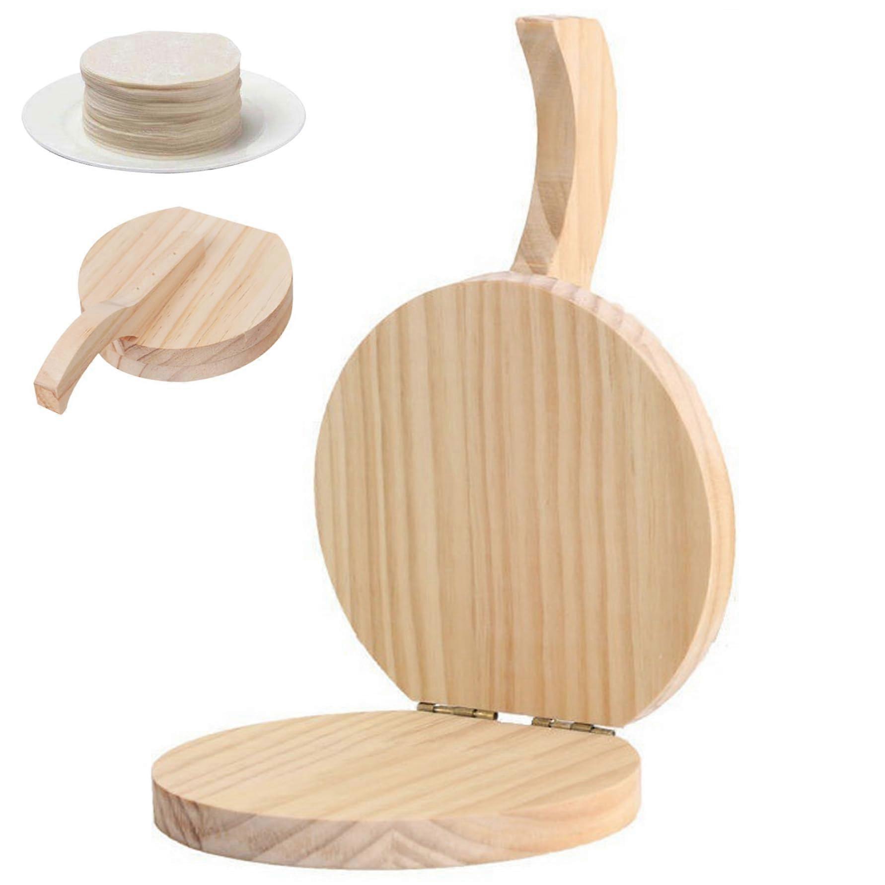 Wooden Tortilla Press 6.5 Inch with Ergonomic Handle for Homemade Tortillas Roti and Tacos
