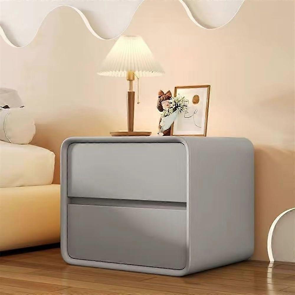 Solid Wood Bedside Table with 2 Drawers, Modern Nightstand with Microfiber Leather, Light Gray
