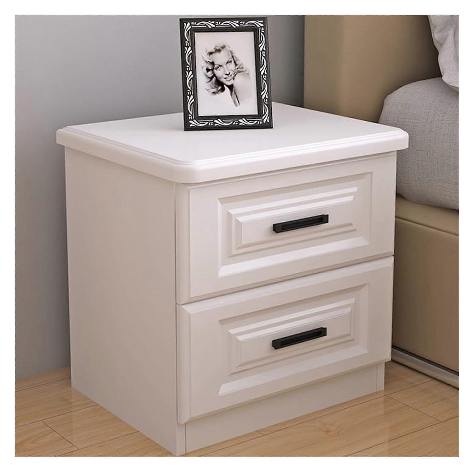 Modern Bedside Table with Dual Drawers, White Nightstand for Bedroom Storage 35x40x49cm