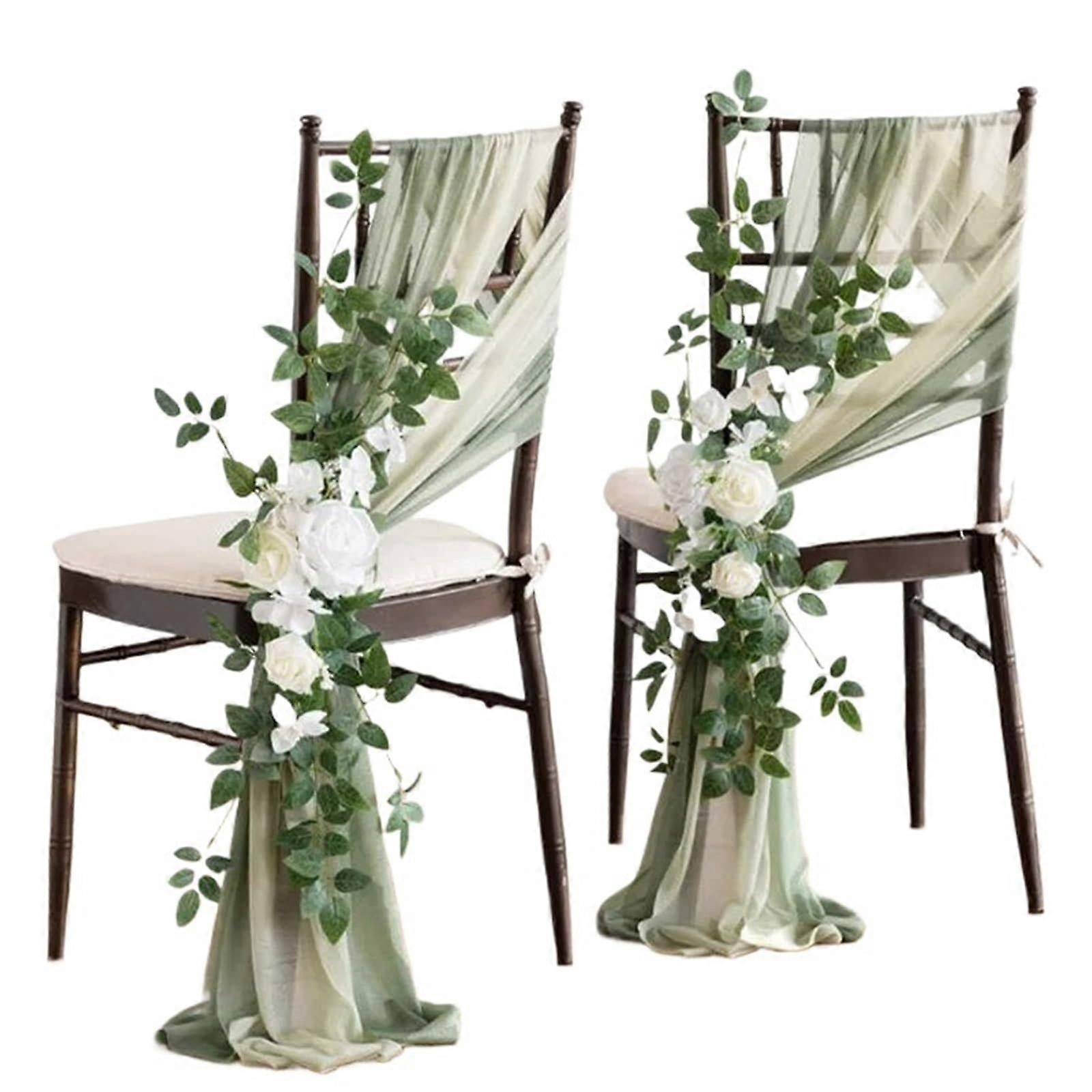 Wedding Chiffon Chair Sashes with Artificial Flowers for Elegant Wedding and Banquet Decor 3Pcs