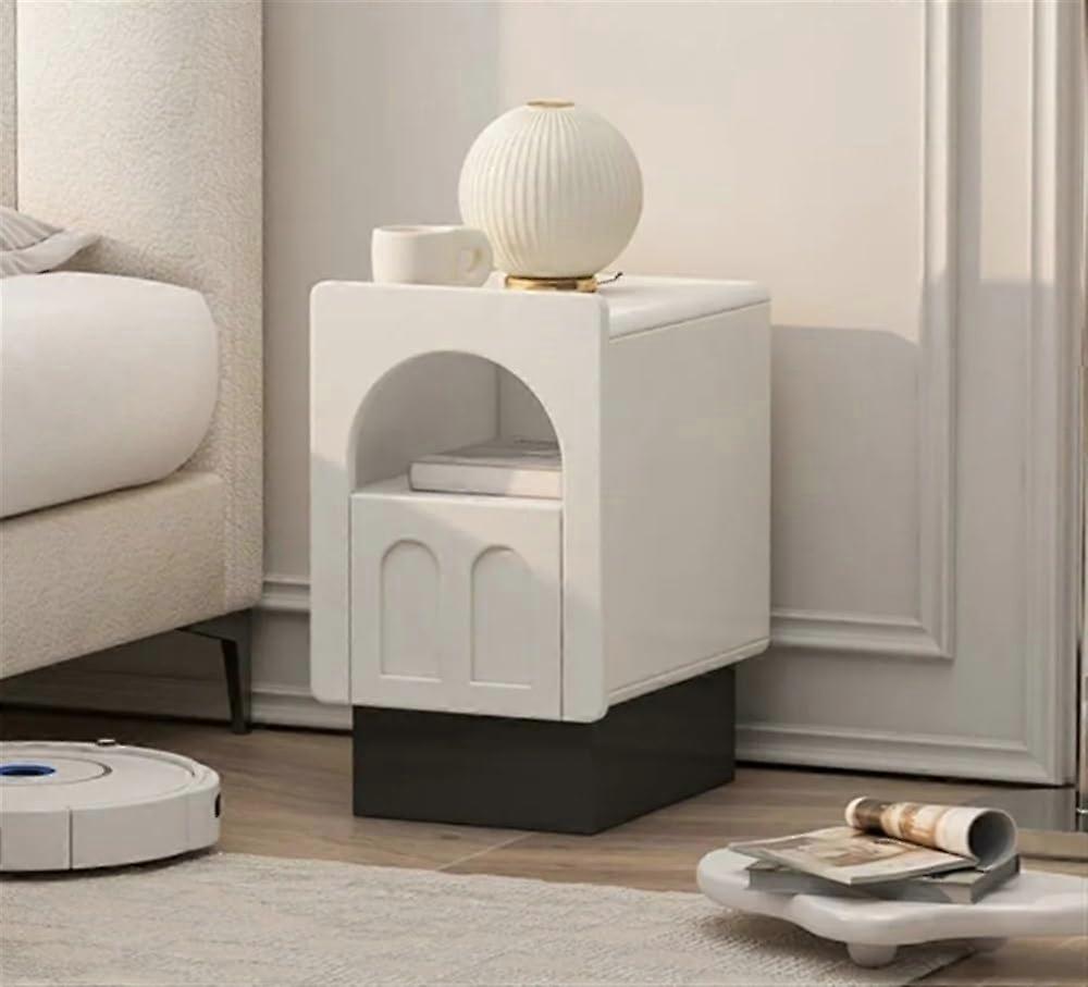 Modern Wooden Bedside Table with Storage, Small 2 Tier Nightstand for Bedroom and Living Room
