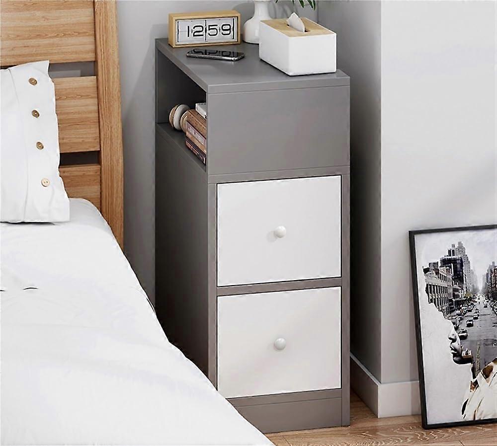 Narrow Bedside Table with 2 Drawers and Open Shelf, Compact Nightstand for Small Spaces, Gray