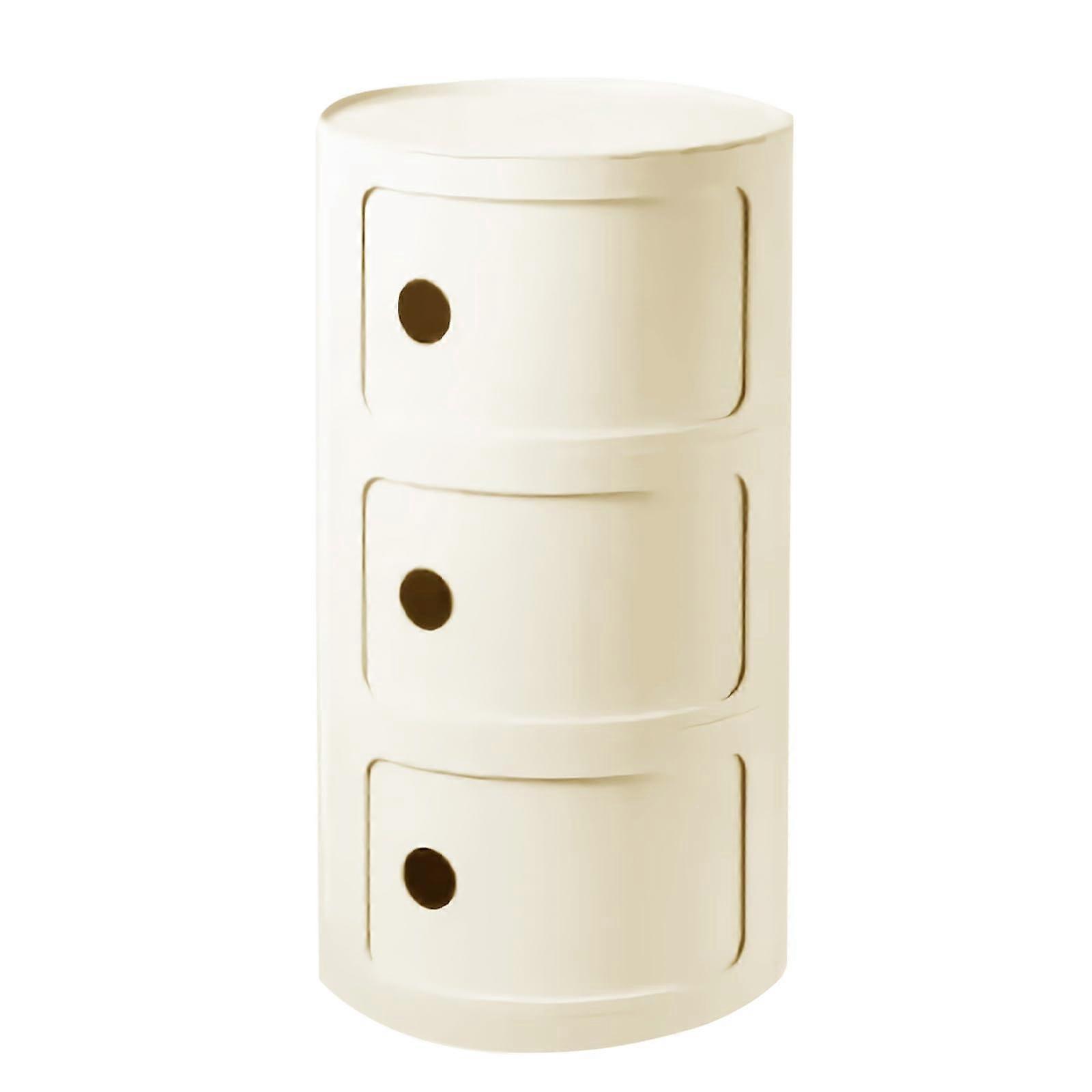 Round Nightstand with 3 Drawers, Modern Bedside Table with Large Storage for Bedroom, Beige