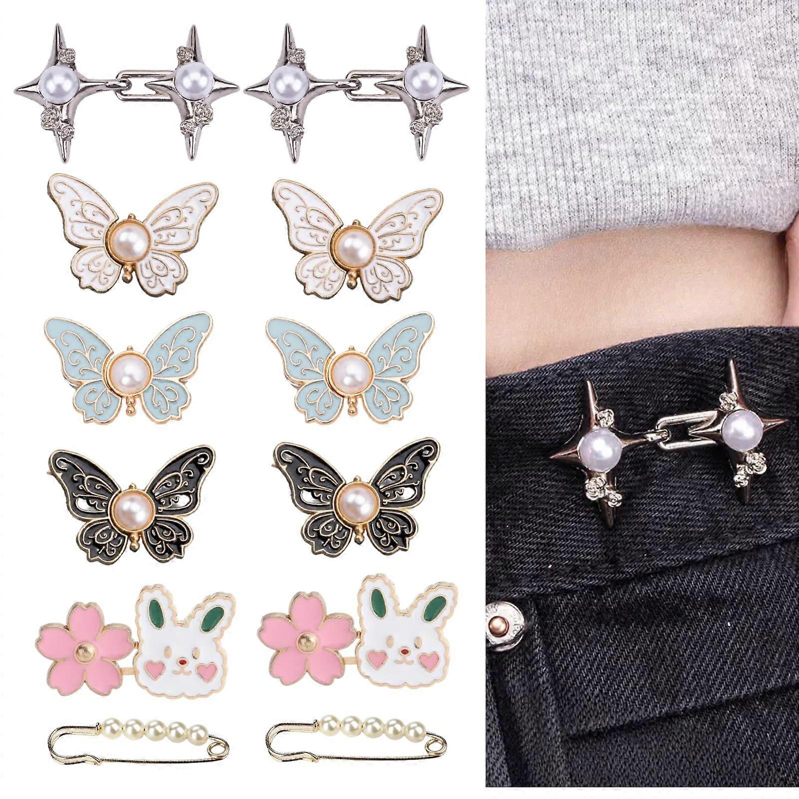 Adjustable Pearl Waist Tightener Clips for Instant Jeans and Skirt Fit with Elegant Reusable Design