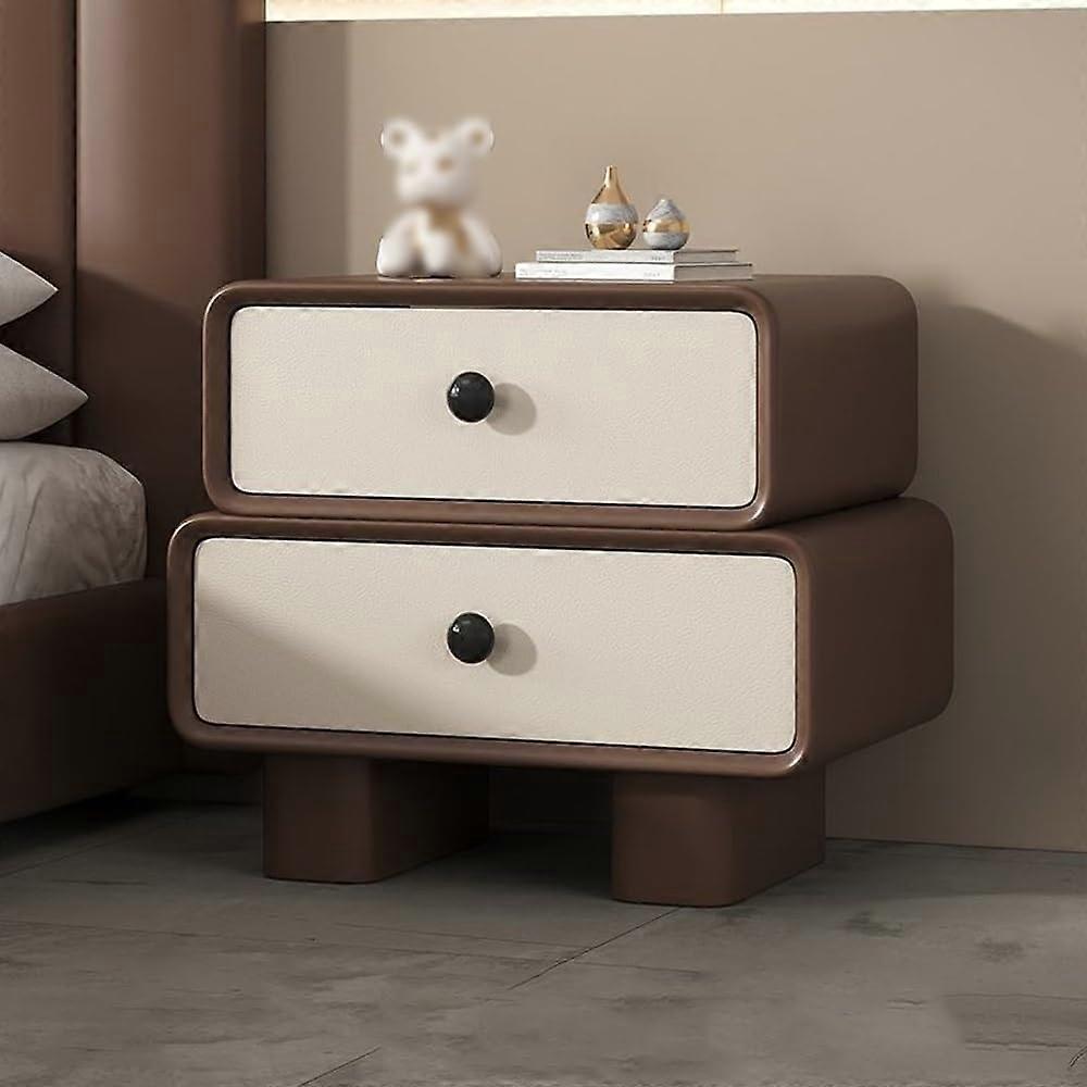 Bedside Table with 2 Drawers, Modern Wooden Nightstand for Small Bedroom or Living Room, Brown 45cm