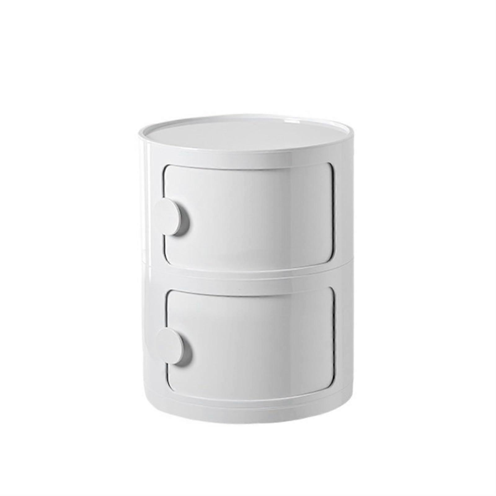 Round Nightstand with Sliding Door Storage, Modern White 2/3/4 Tier Bedside Table for Bedroom and Living Room