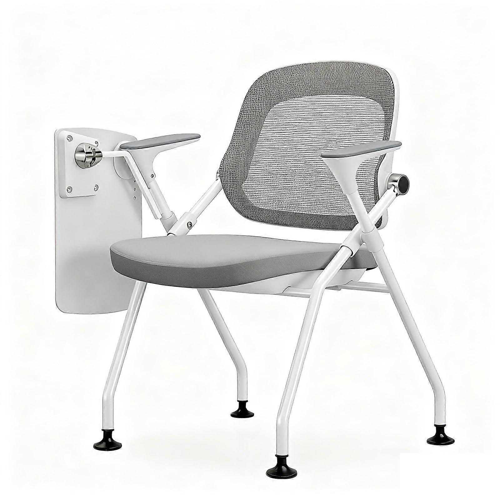 Comfortable Seating Experience This folding chair is designed to deliver both comfort and support during extended use. The breathable mesh backrest promotes airflow, helping to keep your back cool and dry. Its ergonomic curved backrest aligns with the natural curve of your spine, reducing strain and relieving pressure to support healthy posture. MultiFunctional Writing Board Equipped with a retractable writing board crafted from durable, heatresistant, and wearresistant materials, this chair offers a stable surface for writing, reading, or working. The generous board size easily accommodates textbooks and notebooks at the same time, making it suitable for a variety of tasks. Convenient Tray Design The integrated writing pad transforms this folding chair into a practical alternative to a standard desk. Lightweight and easy to move, it is ideal for flexible arrangements such as group work, training sessions, or collaborative environments. Versatile Applications This folding office chair is wellsuited for a wide range of locations and uses. It works equally well in bedrooms, living rooms, offices, schools, reception areas, and conference rooms. Ideal for welcoming guests, conducting interviews, studying, or carrying out work tasks, it can adapt to different spaces with ease. Use Scenarios In an office setting, it serves as a portable workstation for meetings or training events. At home, it can be used in a study or bedroom as a compact deskchair alternative for reading or writing. In a classroom or lecture hall, it provides comfortable seating with a builtin writing surface for students during lessons or exams. Materials and Performance Constructed from quality materials, the chair's sturdy frame offers stability while the mesh backrest ensures comfort. The retractable writing board is resistant to heat and wear, providing a reliable surface for frequent use. Practical and SpaceSaving Designed to fold easily, this chair saves storage space when not in use and simplifies transport between locations, making it an choice for environments where flexibility and efficiency are important.
