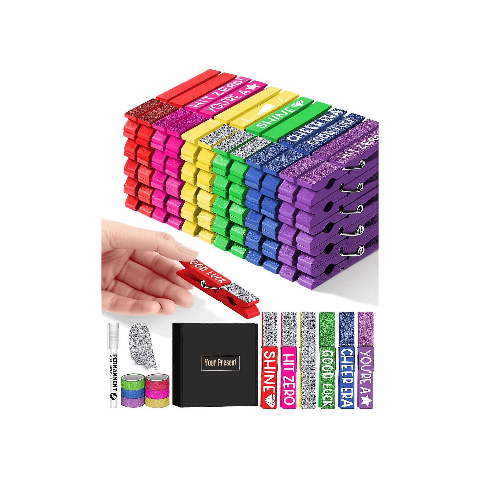 60Pack Colored Wooden Clothespins with Glitter Kit, Durable Clips for Crafts, Photos, Team Gifts