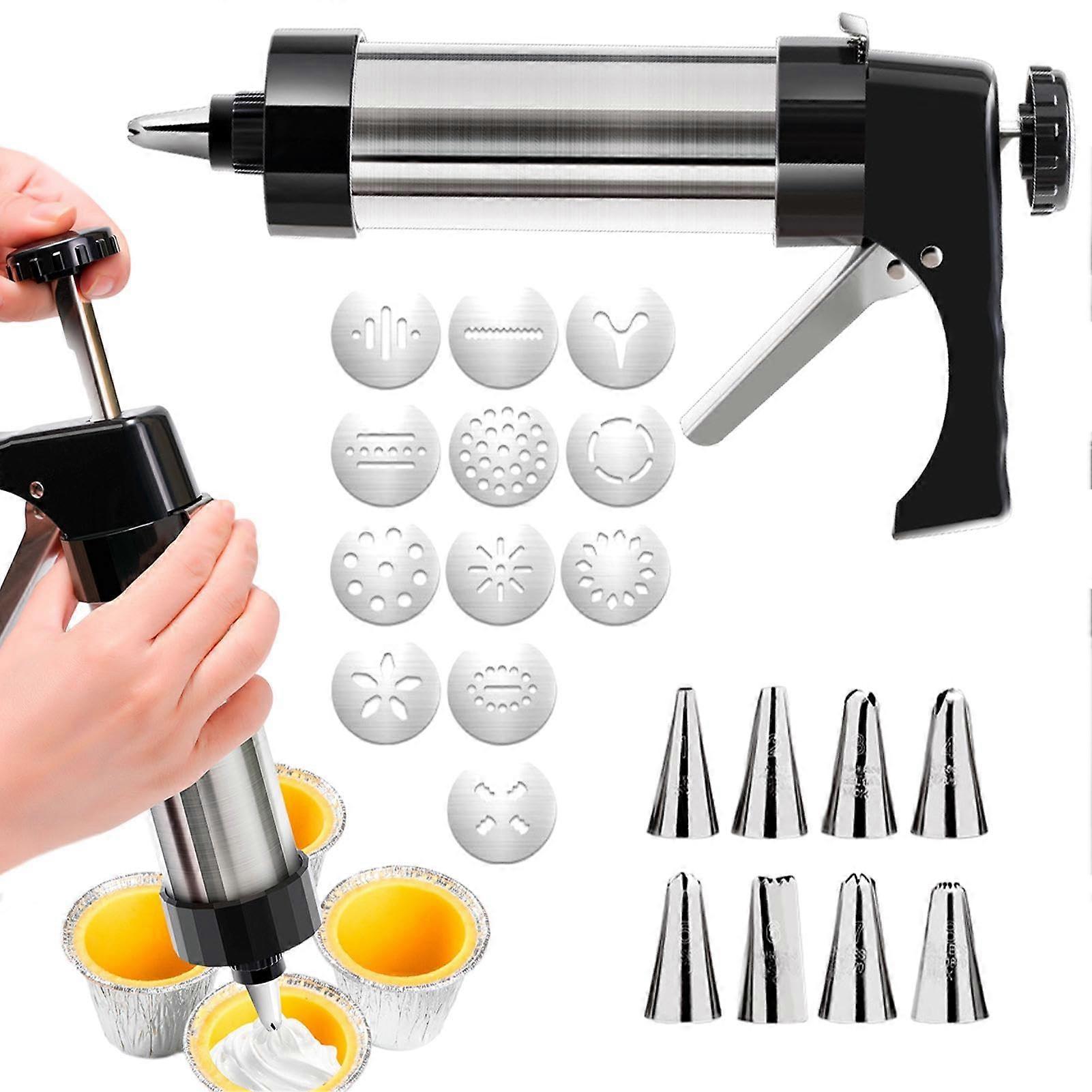 Stainless Steel Cookie Press Gun with 13 Discs and 8 Tips for Biscuit Making and Cake Decorating