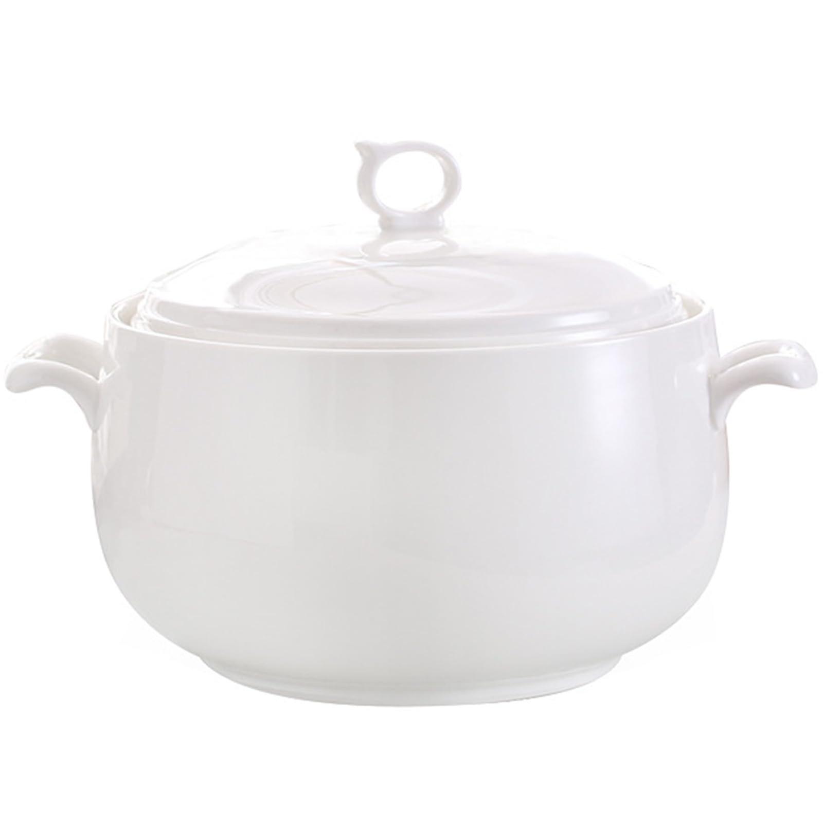 Large Ceramic Soup Tureen with Glass Lid, 3000ml White Porcelain Soup Bowl with Handles