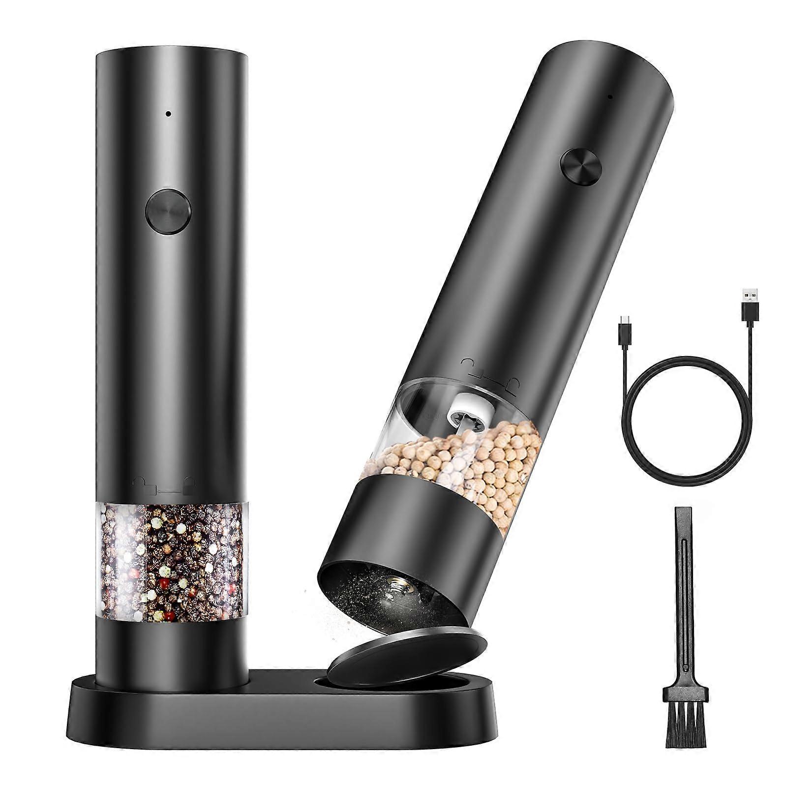 Electric Salt and Pepper Grinder Set Rechargeable Adjustable Coarseness Ceramic Blades 2 Pack Black