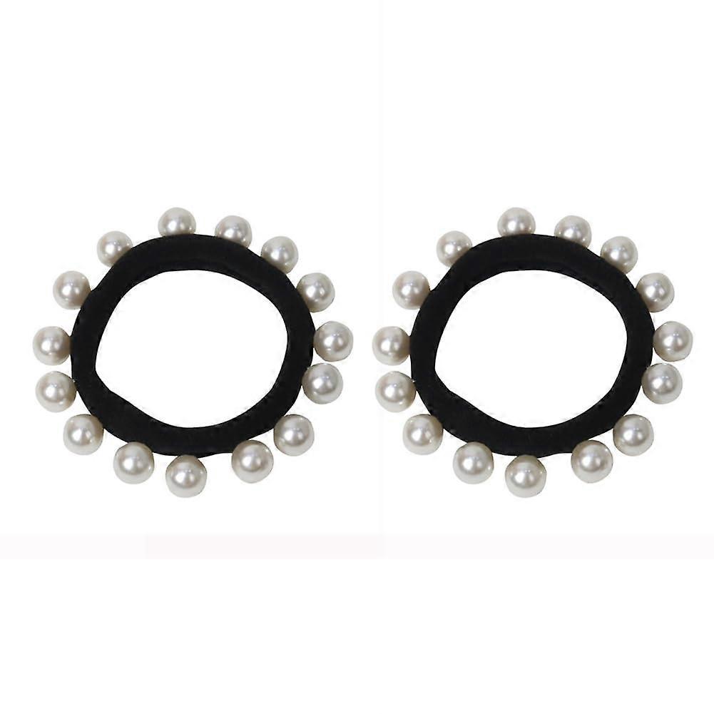 2Pcs White Pearl Hair Ties Elegant Elastic Scrunchies Ponytail Holders for Women and Girls
