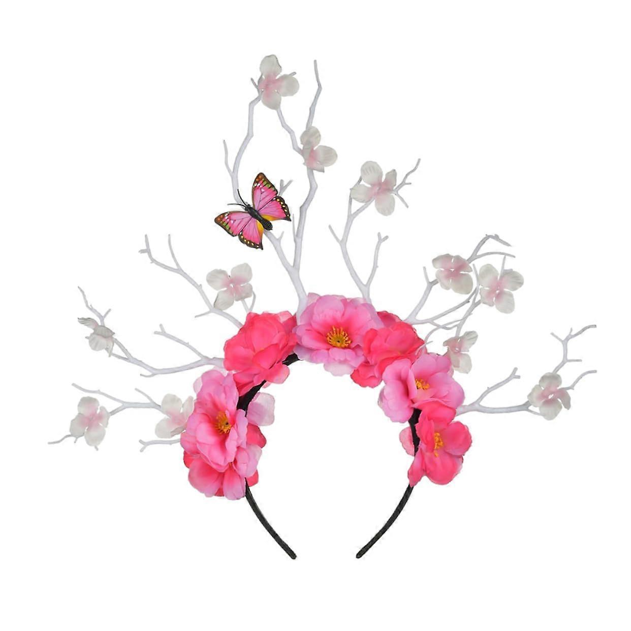 Pink Flower Antler Headband for Party Bridal Mexican Style Hair Wreath Holiday Cosplay