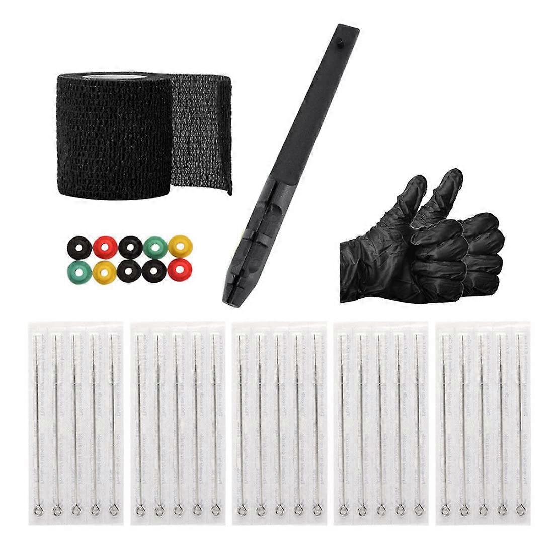 Professional Hand Poke Tattoo Kit with Stainless Steel Needles and Bright Longlasting Pigments Black