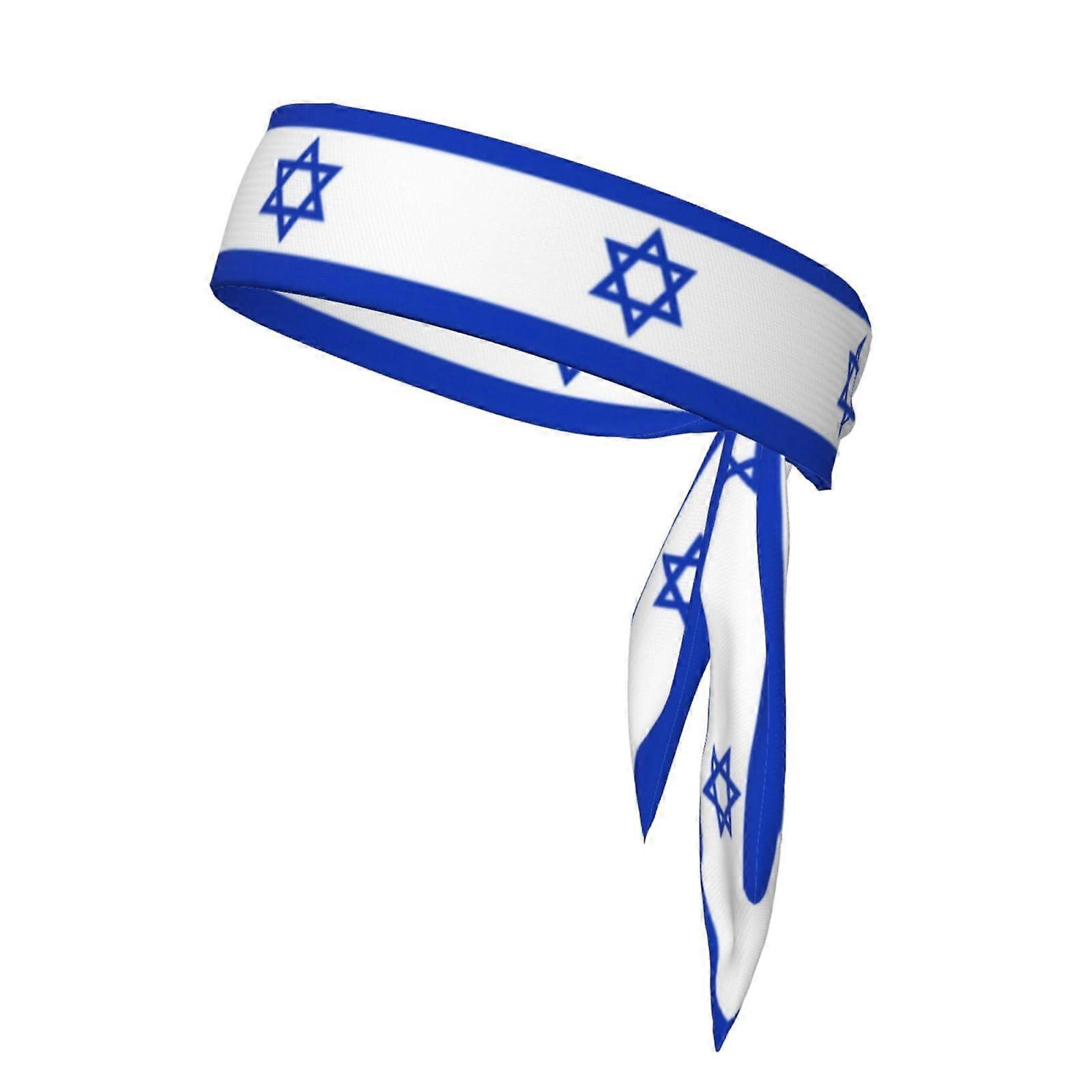 Israeli Flag Headband Adjustable Tie Moisture Wicking Breathable Unisex Sports Sweatband