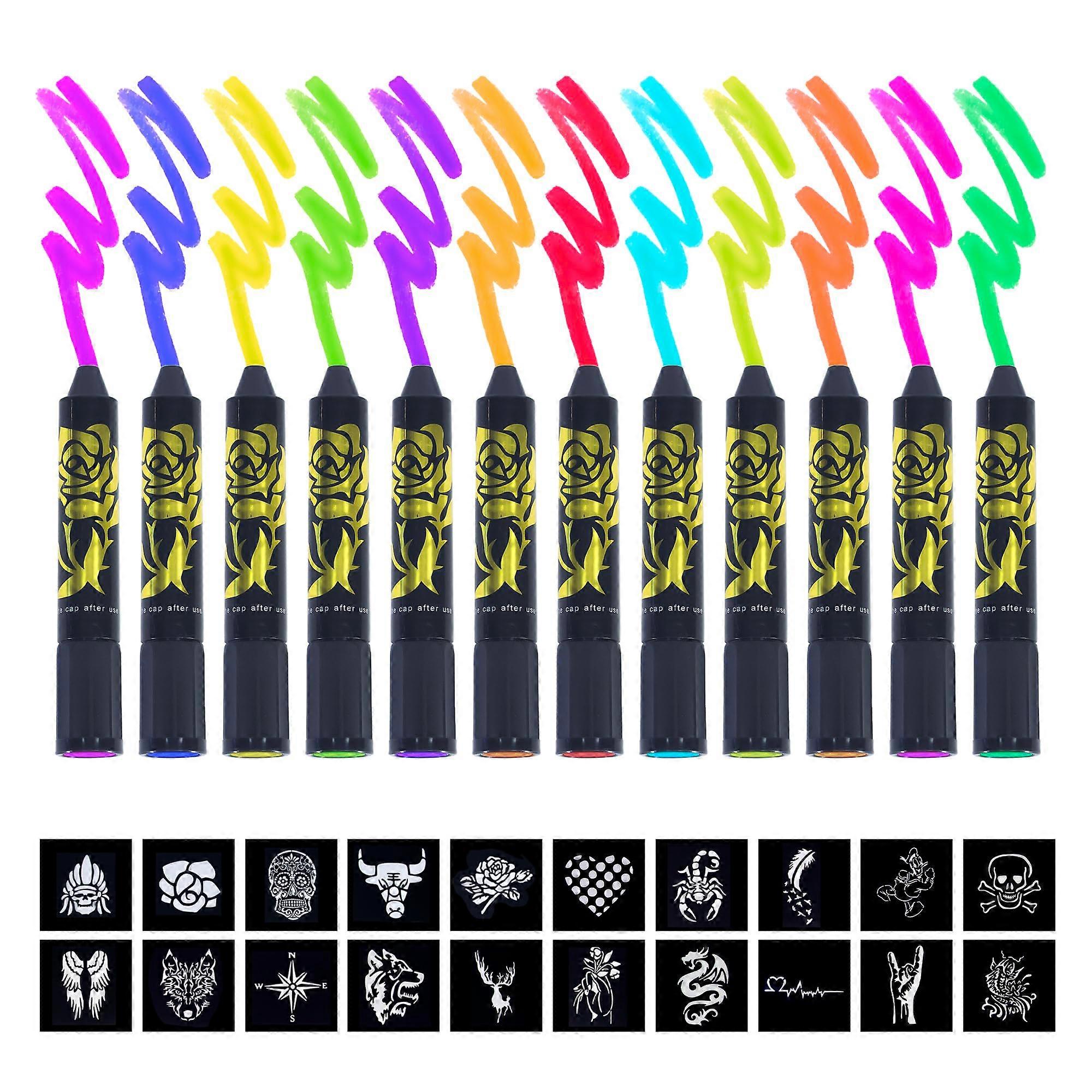 UV Face and Body Paint Crayons Kit with Vivid Neon Colors, Washable, Blacklight Reactive for Parties