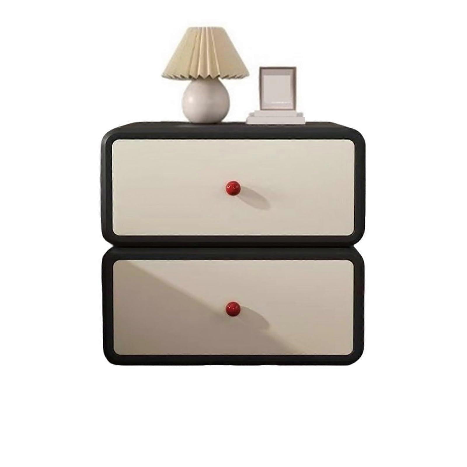 Modern Leather Nightstand with Double Drawers, Black Bedside Table with Silent Slides, 50cm