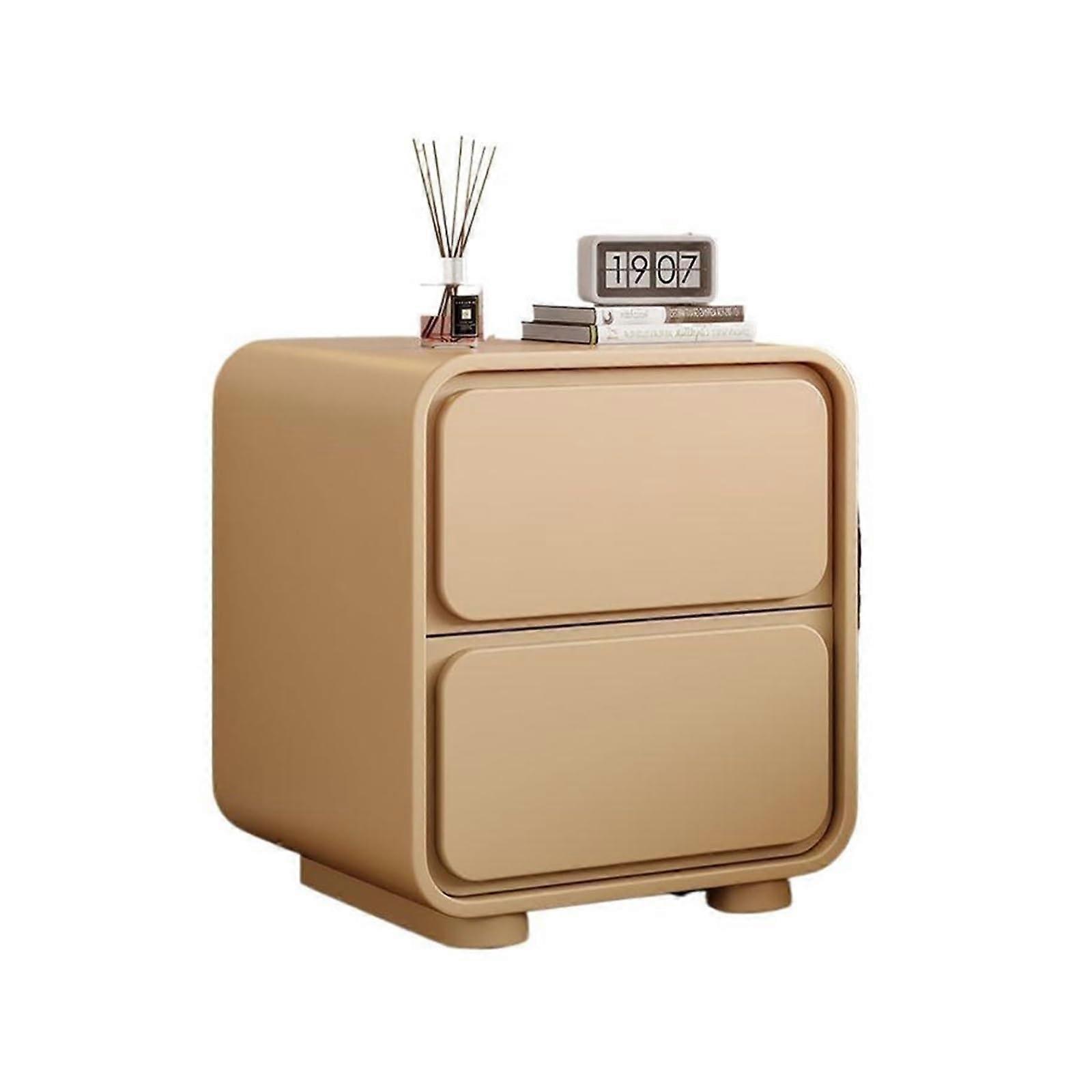 Solid Wood Nightstand with 2 Drawers, Leather Accents, Small Bedside Table for Bedroom or Living Room