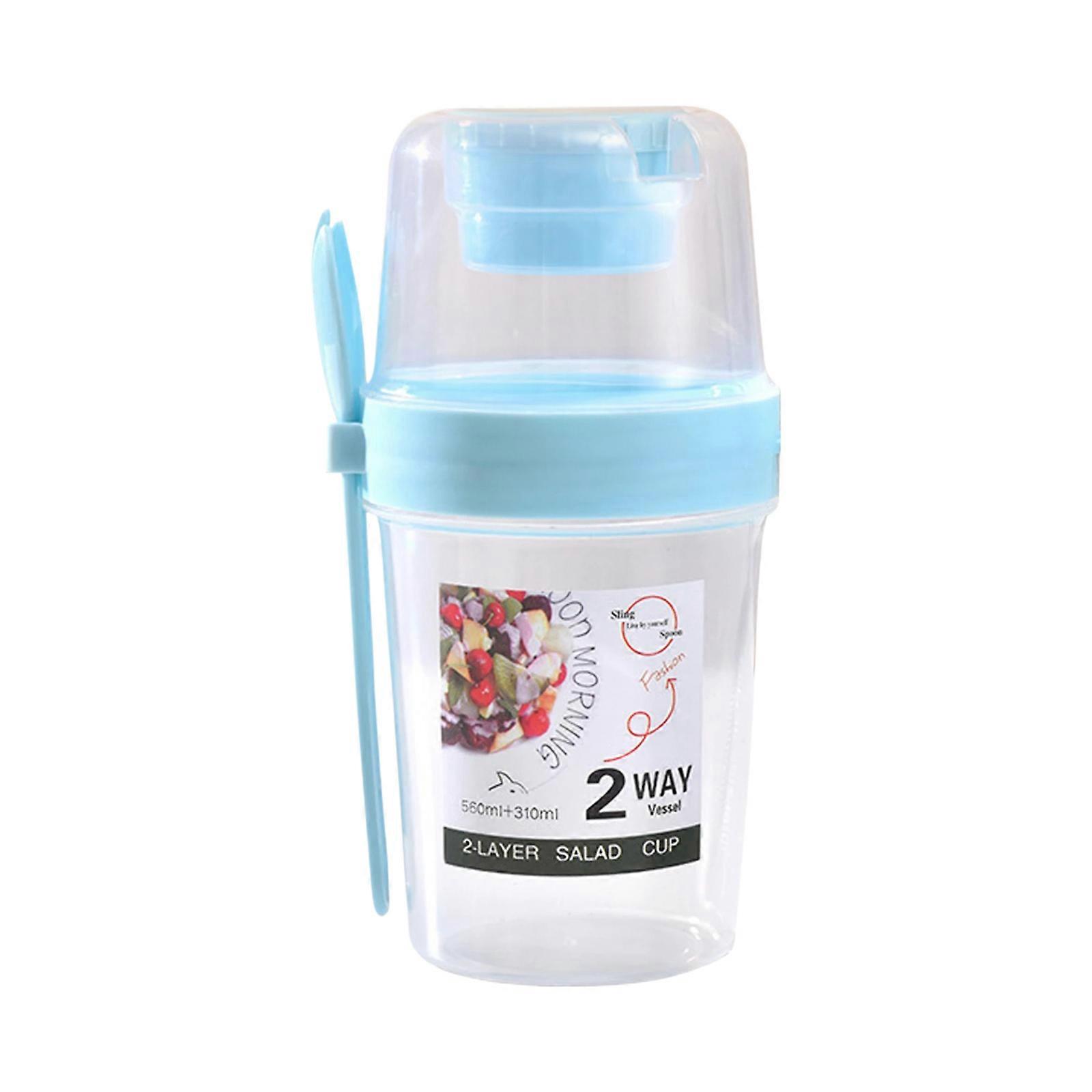 Double Layer Plastic Salad Cup with Spoon Lid Breakfast Cup Yogurt Cereal Overnight Oatmeal Sealed with Fork Portable Light Food