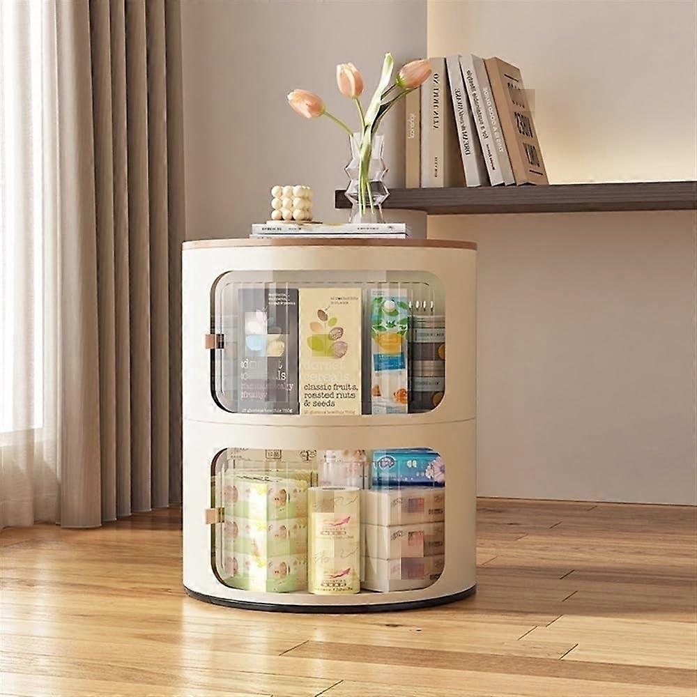 Bedside Table, Round Nightstand with Storage and Transparent Sliding Door, 2 Tier for Bedroom and Living Room
