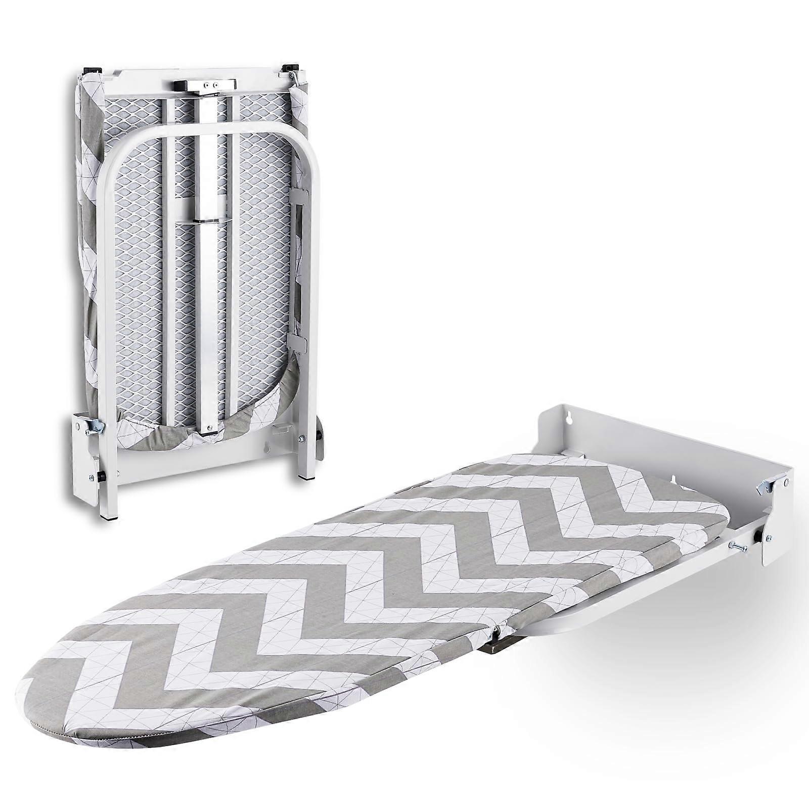 WallMounted Foldable Ironing Board Maximize your space without compromising on convenience. This wallmounted ironing board is designed for small areas and delivers sturdy, smooth, and reliable performance for everyday ironing needs. Key Features and Benefits: SpaceSaving Foldable Design The compact wallmounted design allows you to fold the board flat against the wall when not in use. for dorm rooms, small laundry areas, studio apartments, and other tight spaces. Easy to access when needed, and neatly stored away when not. Strong and Stable Construction Built with a durable metal frame and a bottom telescopic support bar for enhanced stability and strength. Supports up to 11 lbs. For stability, installation on solid surfaces such as wood studs or concrete is recommended; not suitable for drywall installation alone. HeatResistant, Detachable Cotton Cover Equipped with a cotton cover that is both durable and heatresistant. The smooth surface ensures effortless gliding of your iron and even heat distribution for efficient results. The cover can be easily removed for cleaning to maintain freshness and performance. Secure and Easy Locking System Features a simple locking mechanism to securely hold the board in place when stored. Quickly folds away against the wall or fits neatly behind a door, helping to keep your space tidy while maintaining a streamlined appearance. Practical Use Scenarios: Ideal for small laundry rooms where floor space is limited. for apartment dwellers who need a compact ironing solution without bulky storage. Convenient for dorm rooms, providing a reliable ironing surface without taking up valuable living space. Specifications: Type: Wallmounted, foldable ironing board Frame Material: Metal Support: Telescopic bar for added stability Load Capacity: 11 lbs Cover Material: Heatresistant cotton, detachable for cleaning Installation: Recommended on solid surfaces; avoid drywallonly mounting This ironing board offers a functional, spaceefficient solution that is built to last, making it a dependable addition to any home with limited space.