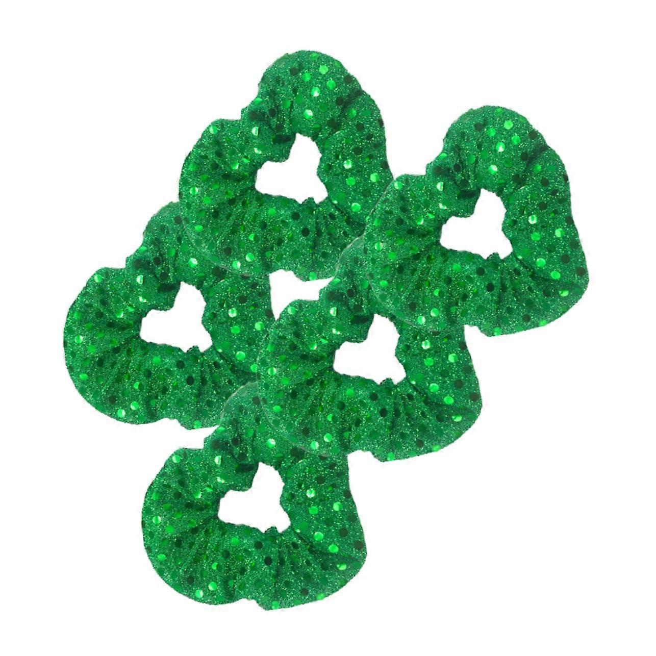 Christmas Hair Ties 5 Pack Green Sequined Elastic Ponytail Holders for Women Holiday Party