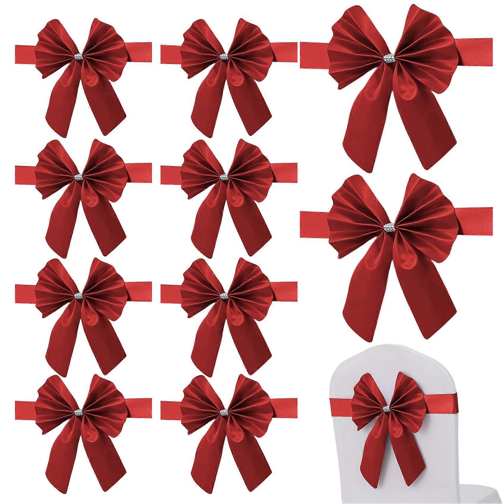 10Pcs Red Chair Sashes with Bow Knot Elastic Bows for Wedding Party Banquet Hotel Decoration