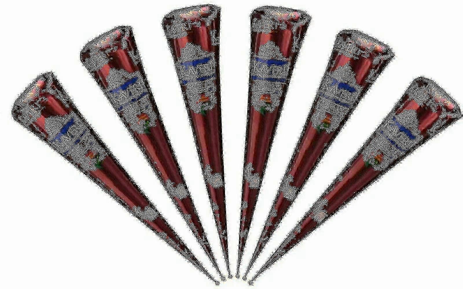 Dark Brown Natural Henna Mehndi Cones - 6 Pack for Temporary Tattoos 25-26
