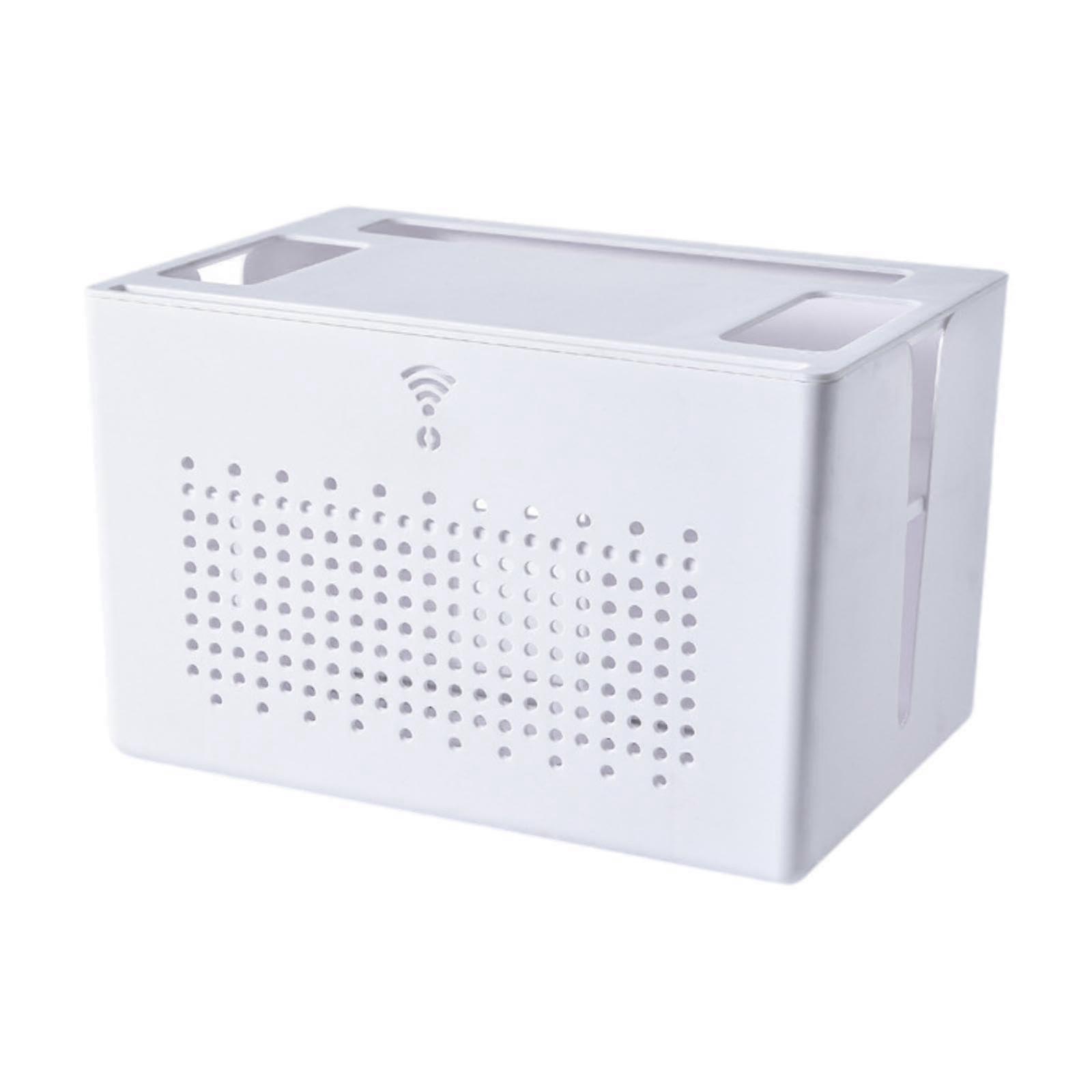 Cable Management Box with Large Capacity Router Storage, Dustproof Cover for Power Strip and Cords, White