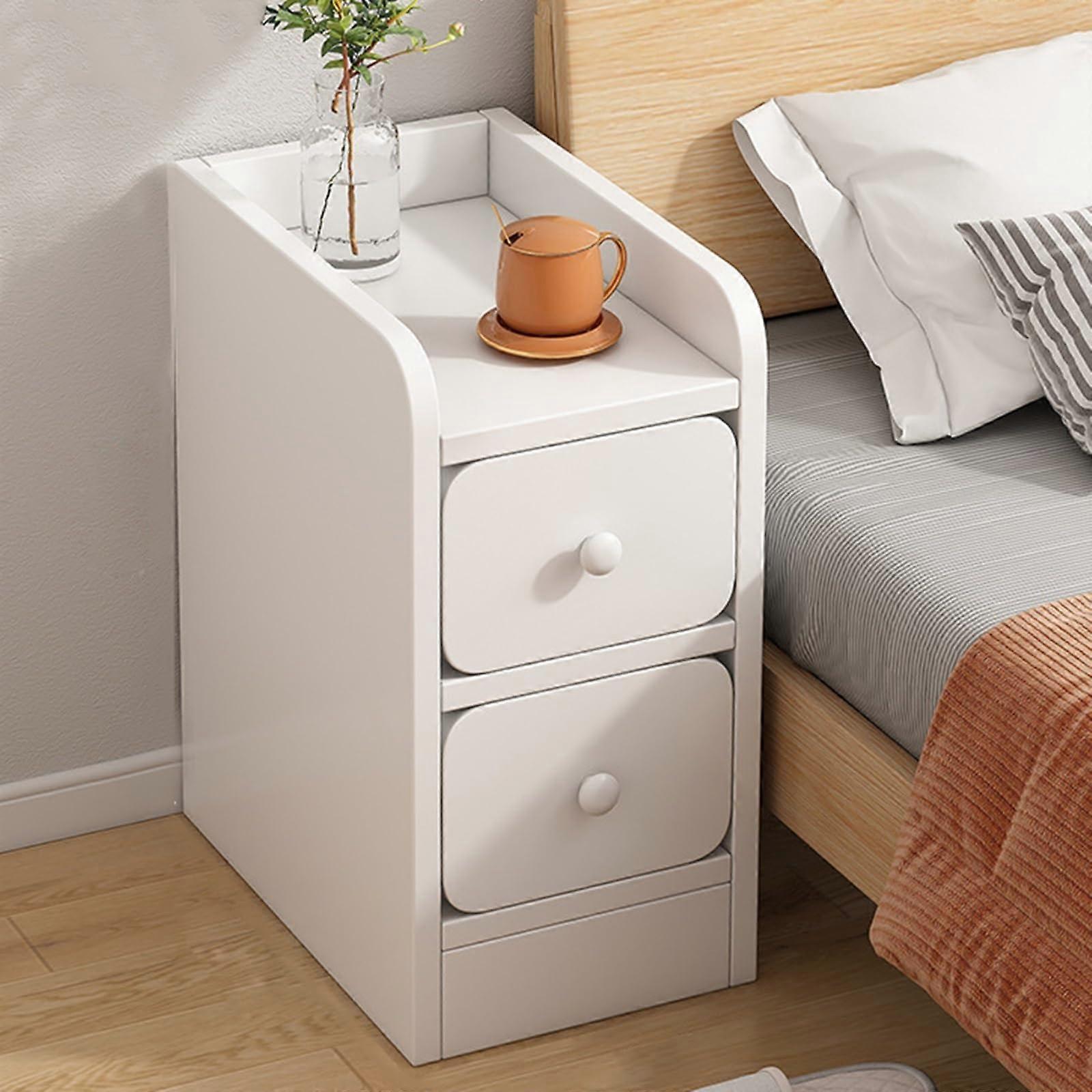 White Wooden Nightstand with Double Drawers, Large Capacity Storage, Stable Base for Bedroom
